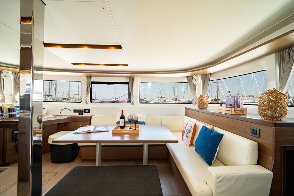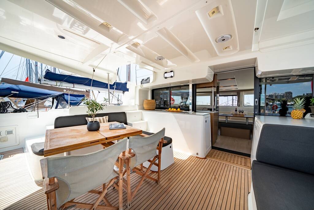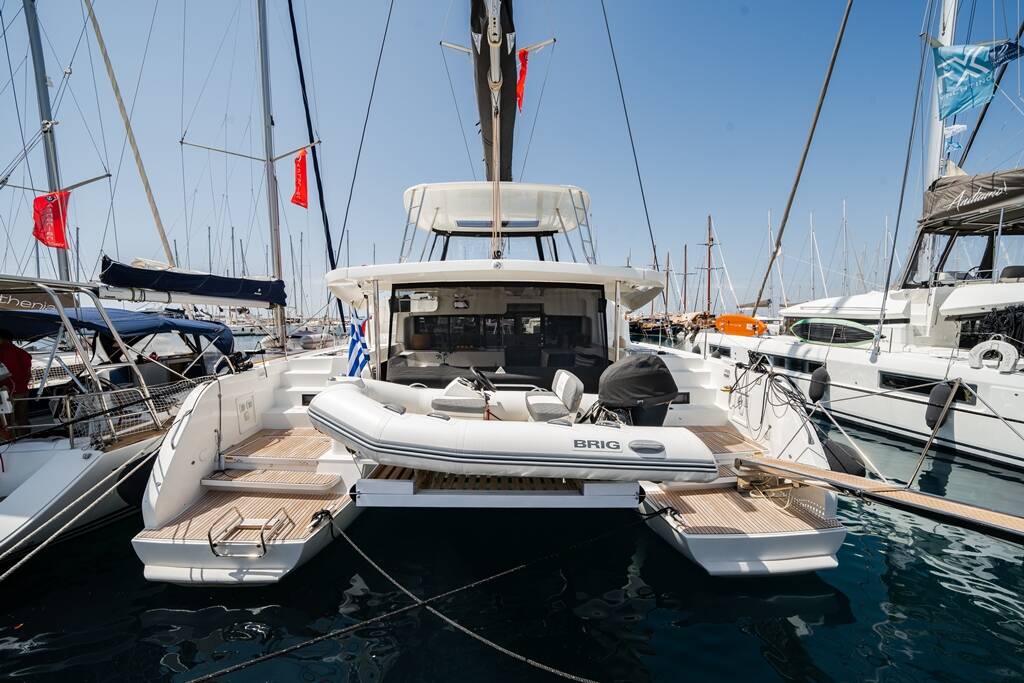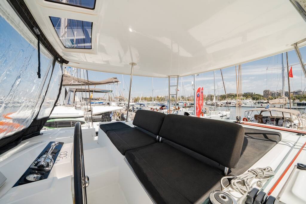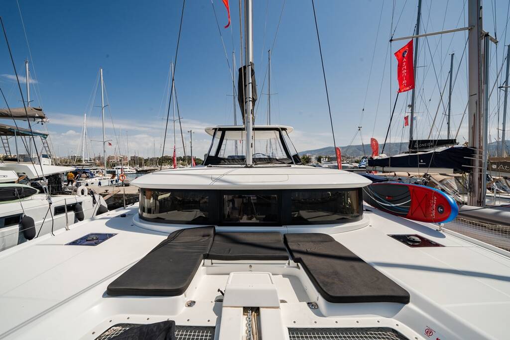 Katamaran Lagoon 46 Cataleya, Baujahr 2021, liegt im Athens, Alimos marina, Athens area/Saronic/Peloponese, Griechenland vor Anker. Es verfügt über 4 + 1 Kabinen und bietet Platz für 8 + 2 + 1 Personen mit 4 + 1 Toiletten.