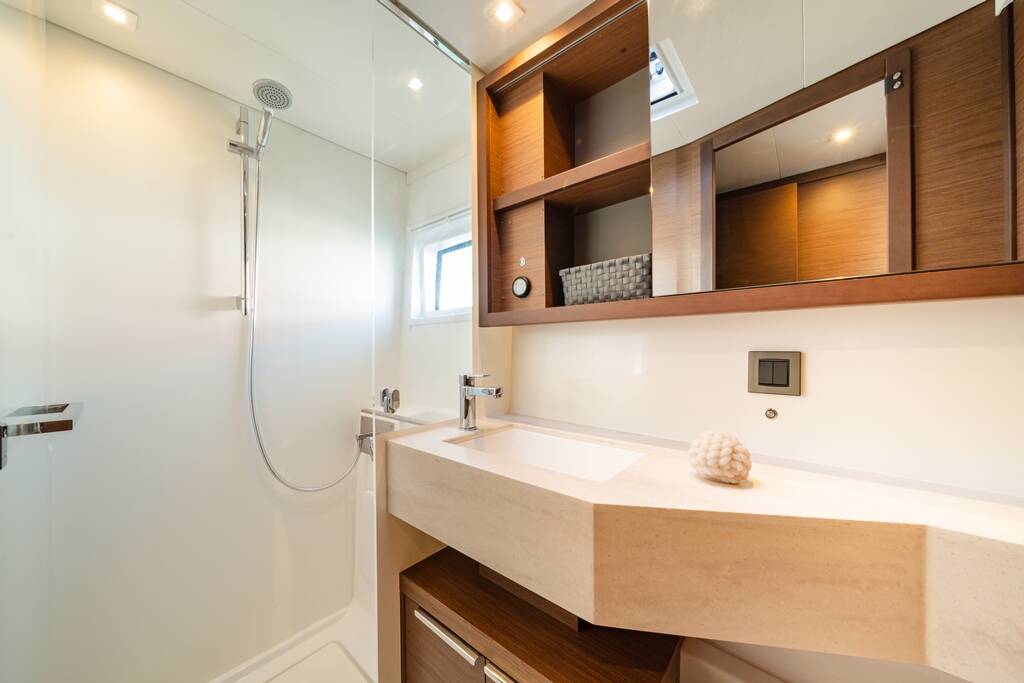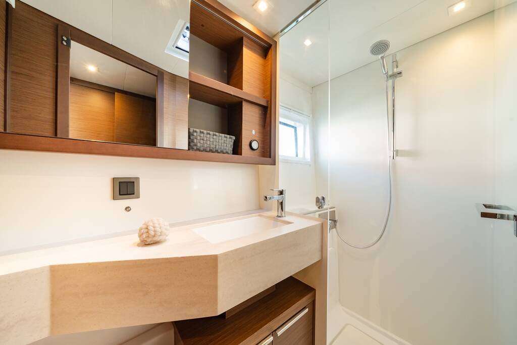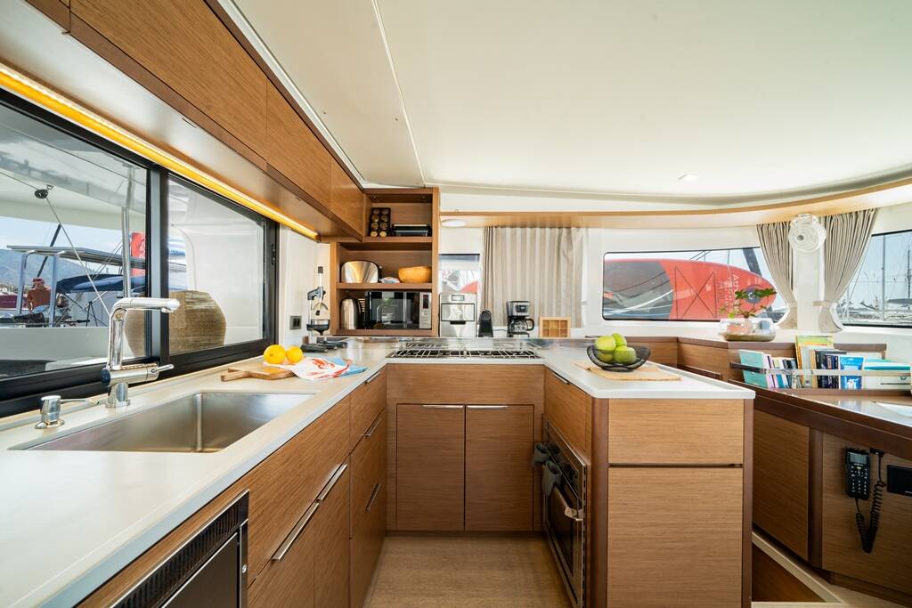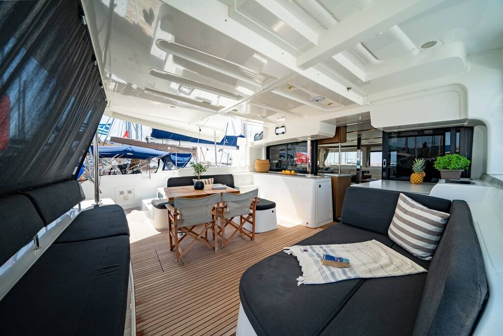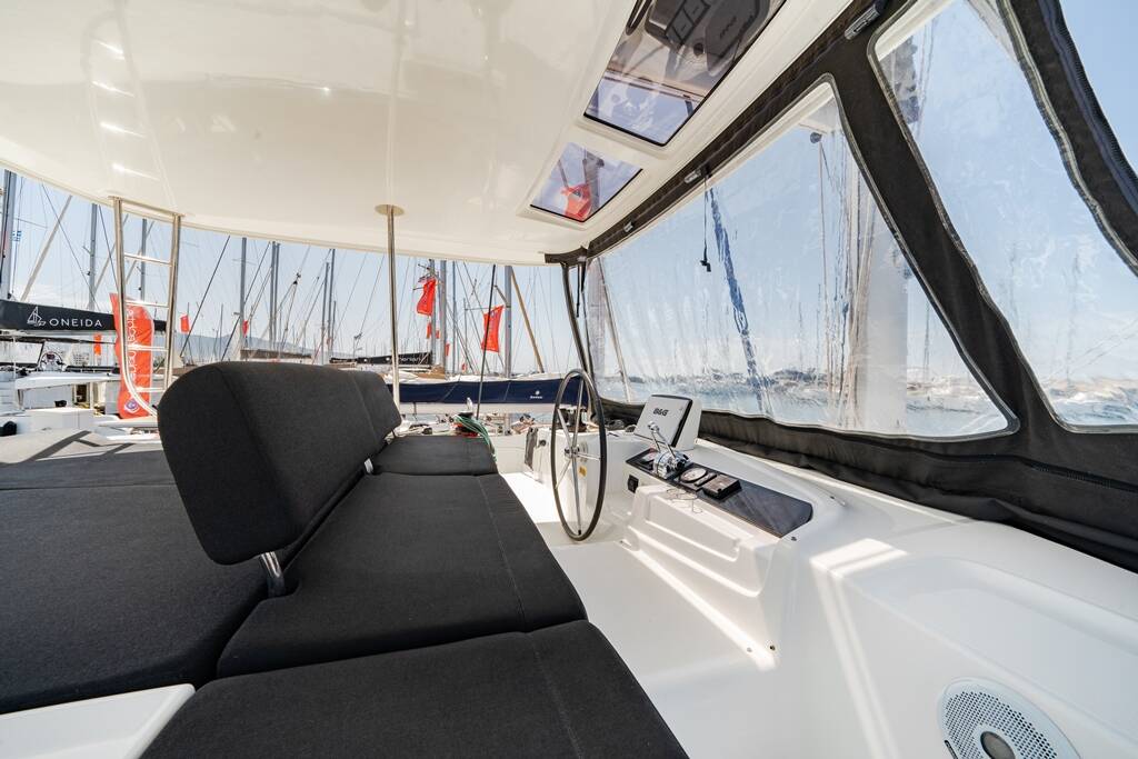 Katamaran Lagoon 46 Cataleya, Baujahr 2021, liegt im Athens, Alimos marina, Athens area/Saronic/Peloponese, Griechenland vor Anker. Es verfügt über 4 + 1 Kabinen und bietet Platz für 8 + 2 + 1 Personen mit 4 + 1 Toiletten.