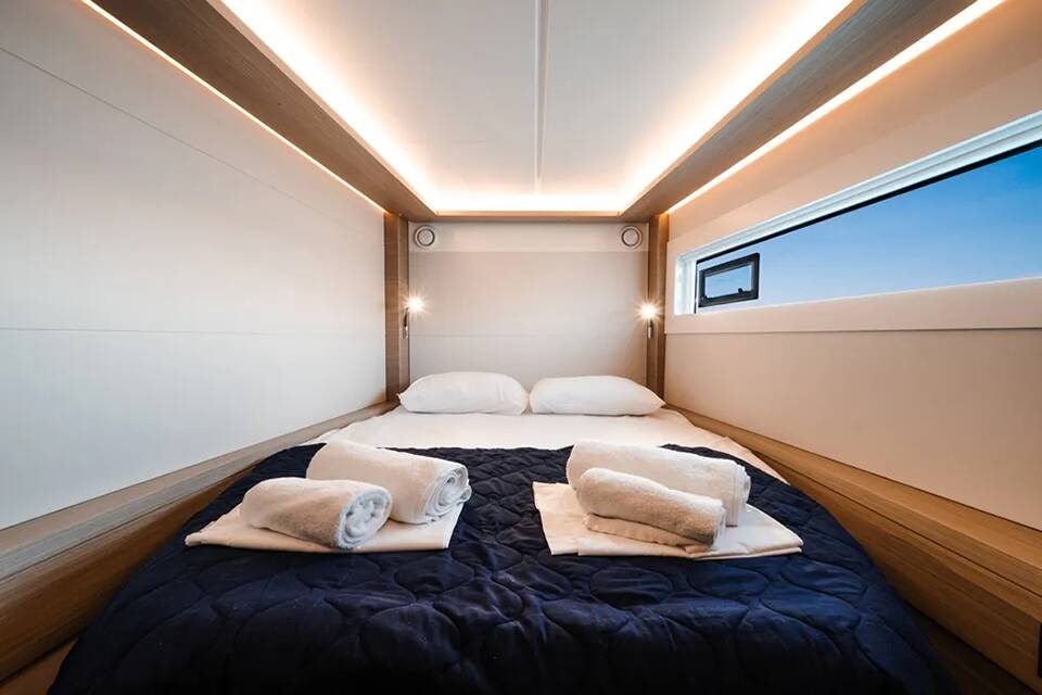Katamaran Lagoon 46 Mary Grace II, Baujahr 2024, liegt im Athens, Alimos marina, Athens area/Saronic/Peloponese, Griechenland vor Anker. Es verfügt über 4 + 2 Kabinen und bietet Platz für 8 + 2 Personen mit 4 + 2 Toiletten.
