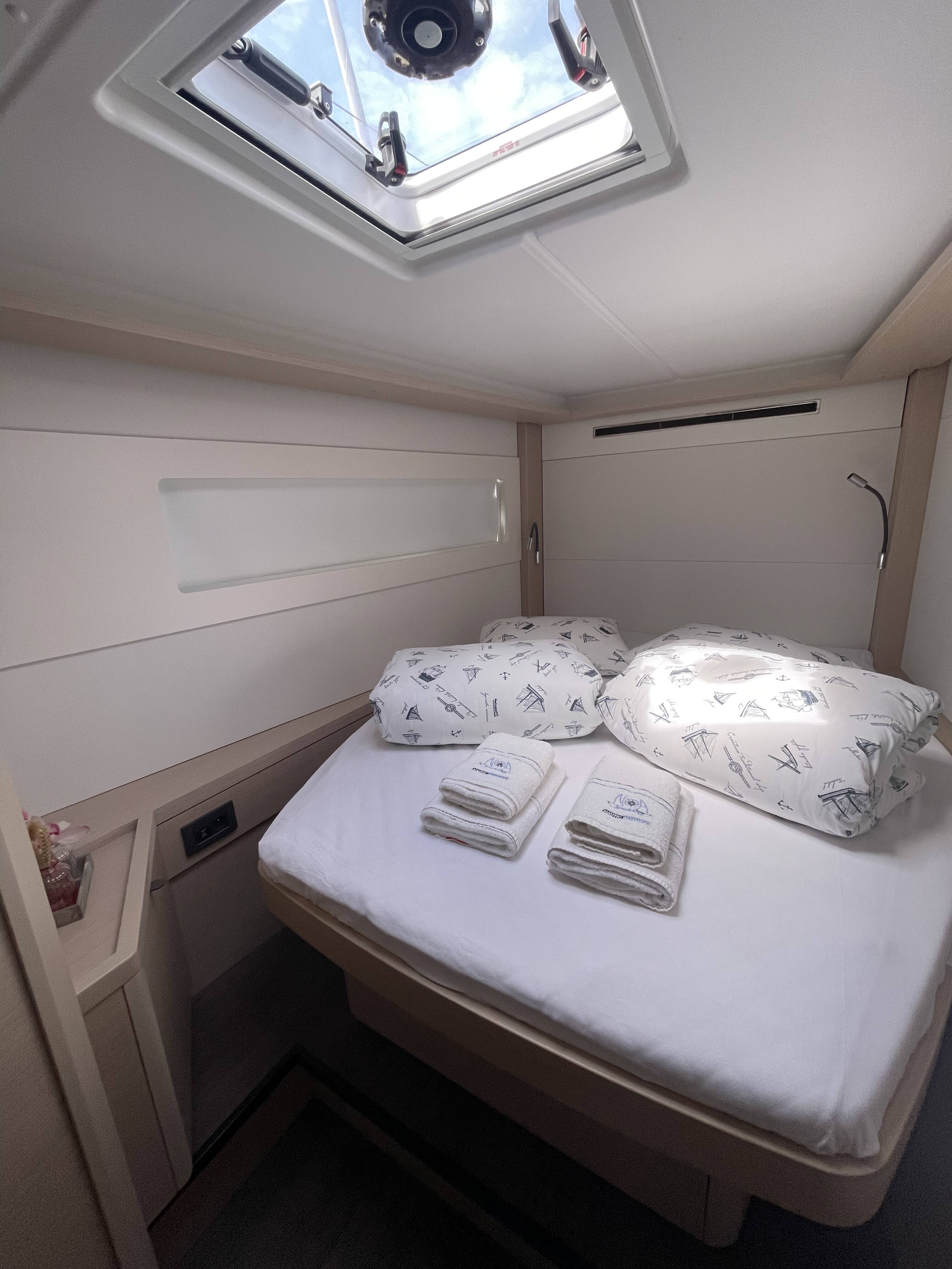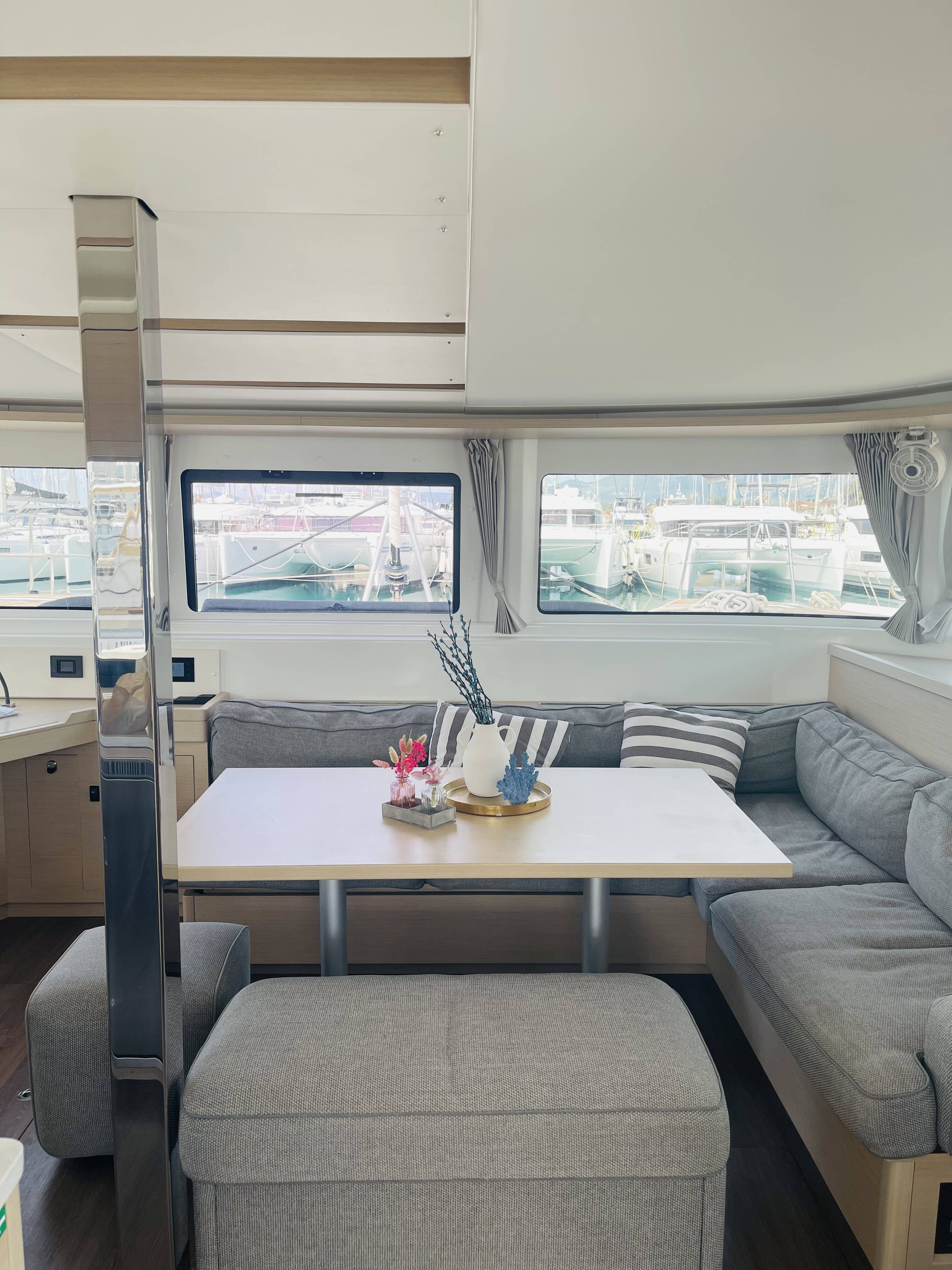 Katamaran Lagoon 46 OW Uncharted, Baujahr 2023, liegt im Marina Kastela, Split & Umgebung, Kroatien vor Anker. Es verfügt über 3 + 2 Kabinen und bietet Platz für 6 + 2 Personen mit 3 Toiletten.