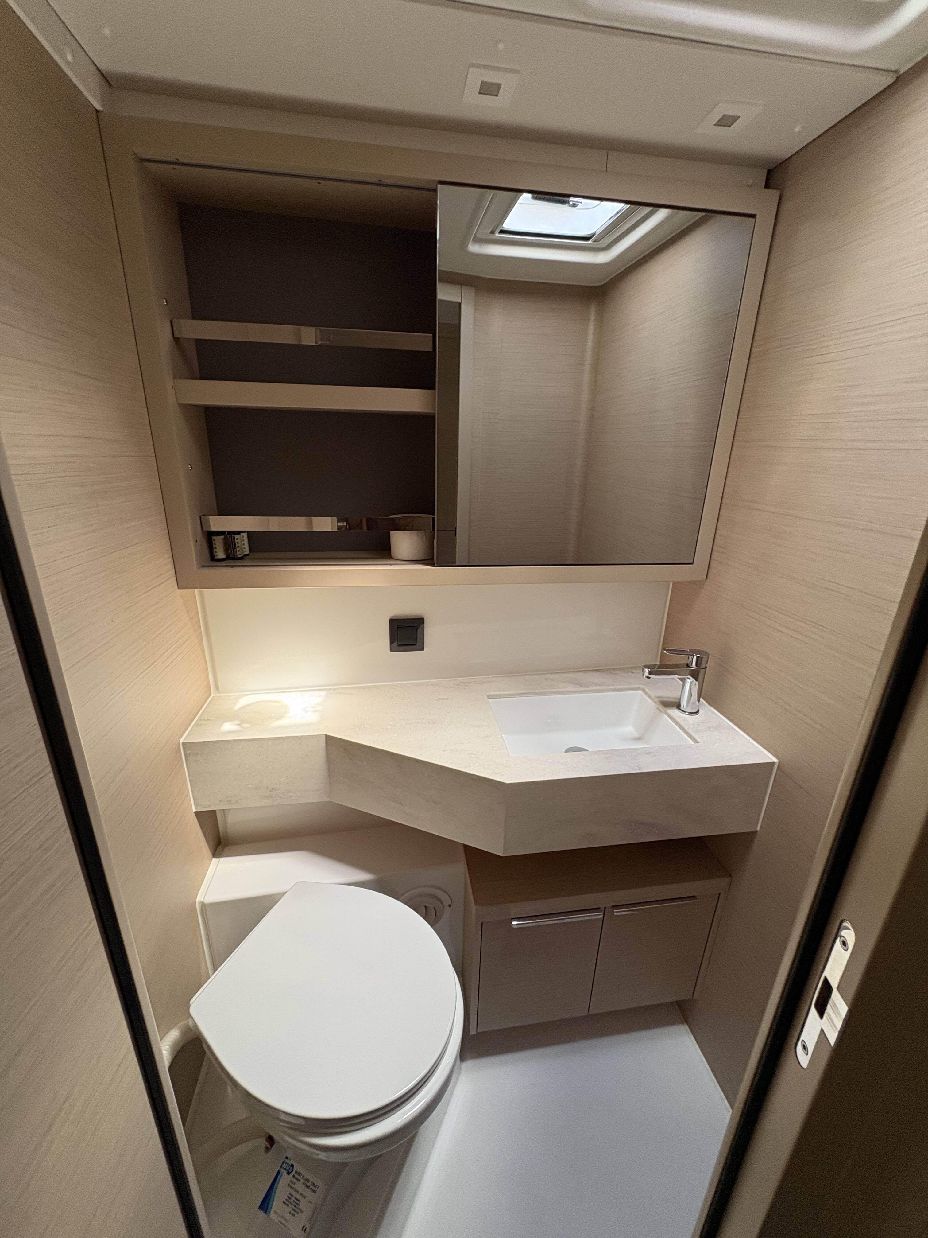 Klimaanlage ; Generator ; Entsalzungsanlage ; Teak-Cockpit ; Geschirrspüler ; Elektrische Toilette