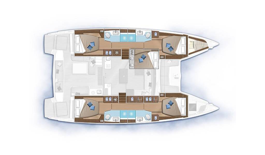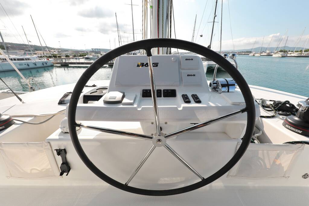 Katamaran Lagoon 50 Ugly Duck, Baujahr 2018, liegt im Sukosan, D-Marin Dalmacija Marina, Zadar & Umgebung, Kroatien vor Anker. Es verfügt über 5 + 1 Kabinen und bietet Platz für 10 + 1 + 1 Personen mit 4 + 1 Toiletten.