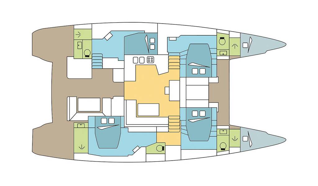 Katamaran Lagoon 52 F Madinina, Baujahr 2021, liegt im Lavrion - Olympic Marine, Athens area/Saronic/Peloponese, Griechenland vor Anker. Es verfügt über 4 + 2 Kabinen und bietet Platz für 8 + 3 Personen mit 4 Toiletten.