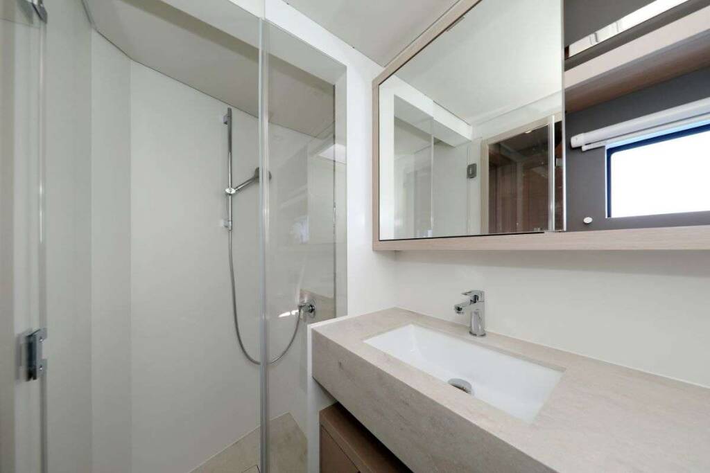 Katamaran Lagoon 55 Champagne Please, Baujahr 2024, liegt im Marina Kastela, Split & Umgebung, Kroatien vor Anker. Es verfügt über 4 + 2 Kabinen und bietet Platz für 8 + 2 Personen mit 4 Toiletten.