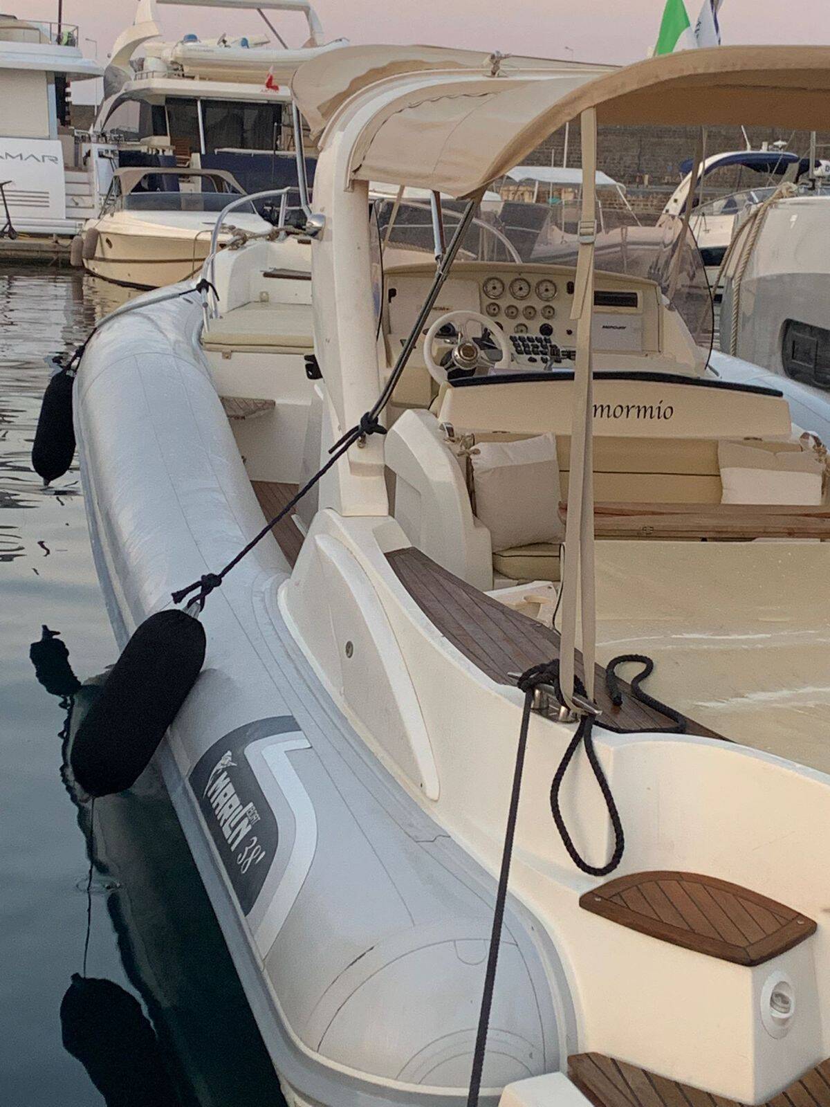 Schlauchboot Marlin 38 Amormio, Baujahr 2025, liegt im Sicily, Riposto, Sizilien, Italien vor Anker. Es verfügt über 0 Kabinen und bietet Platz für 0 Personen mit 0 Toiletten.