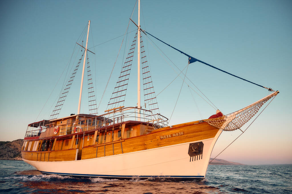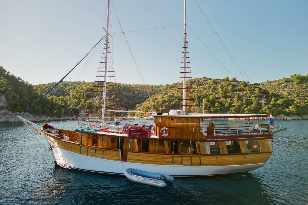 Die Moja Maja ist ein charmantes Schiff, ideal für private Charterfahrten. Sie bietet die perfekte Kombination aus Komfort, Intimität und authentischem Adria-Flair. Mit einer Länge von 24 Metern und einer Breite von 6,8 Metern bietet das Schiff viel Platz zum Entspannen und Genießen der atemberaubenden Küste Kroatiens. Das großzügige 90 m² große Sonnendeck lädt zum Sonnenbaden, geselligen Beisammensein oder einfach nur zum Genießen des traumhaften Ausblicks auf die Adria ein.