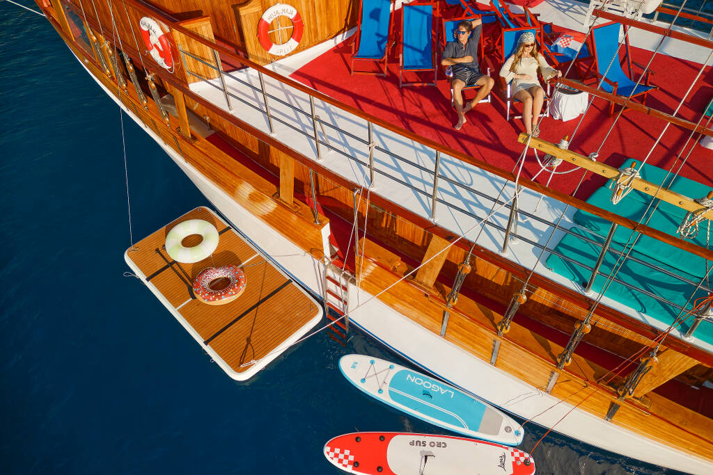 Die Moja Maja ist ideal, um Kroatiens Inseln und versteckte Buchten zu erkunden und bietet ein entspanntes und individuelles Kreuzfahrterlebnis. Gäste können die Adria in ihrem eigenen Tempo genießen und sich dabei auf freundlichen Service und eine einladende Atmosphäre an Bord verlassen.