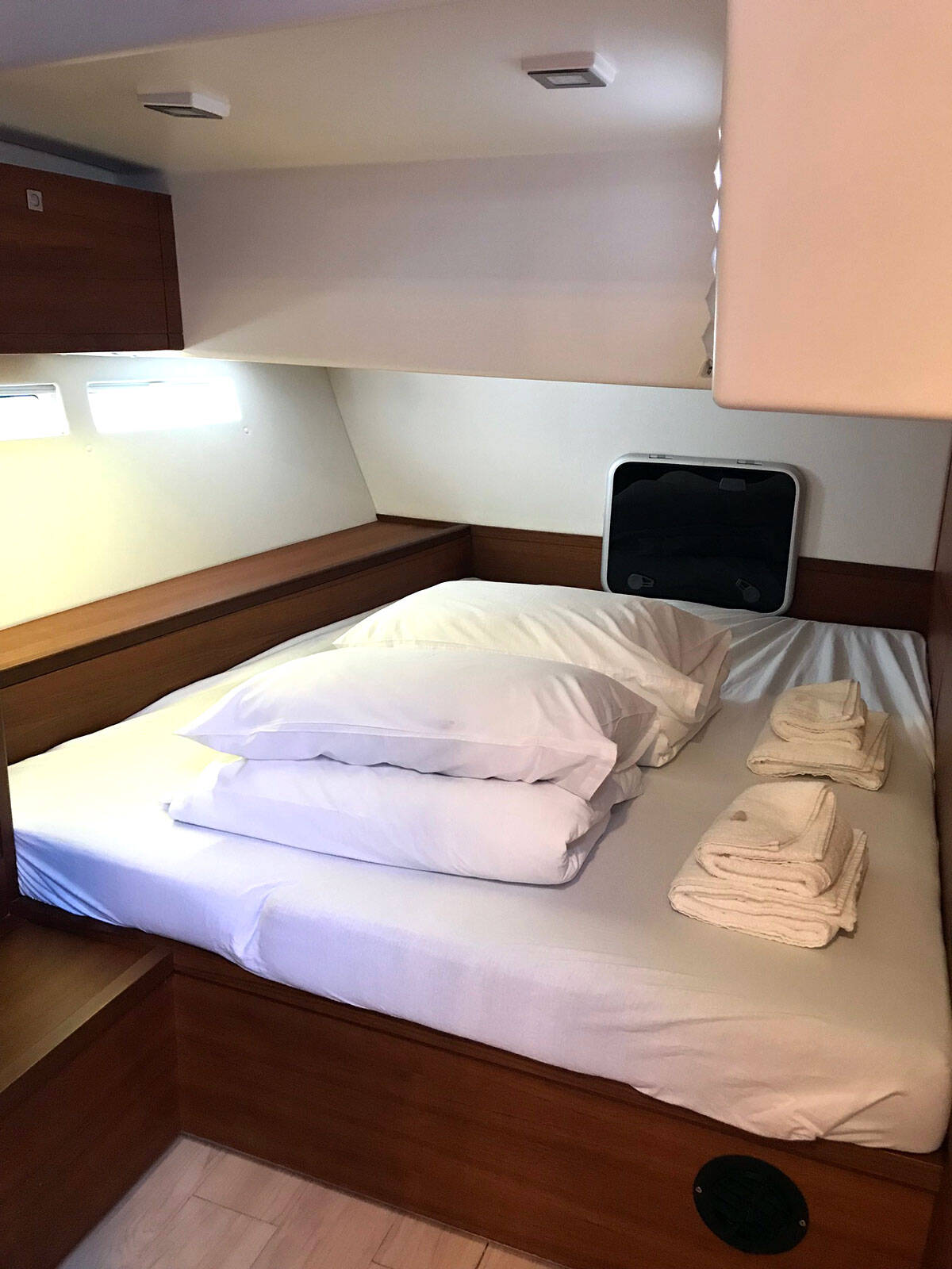 Segelyacht More 55 Lia of Sweden, Baujahr 2016, liegt im Marina Kastela, Split & Umgebung, Kroatien vor Anker. Es verfügt über 5 + 1 Kabinen und bietet Platz für 10 + 1 + 1 Personen mit 3 + 1 Toiletten.