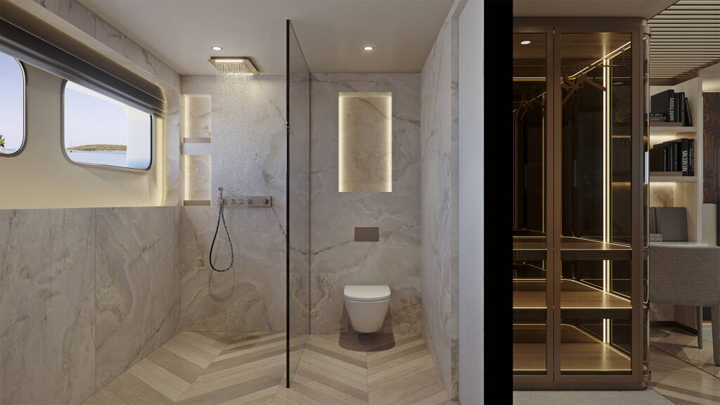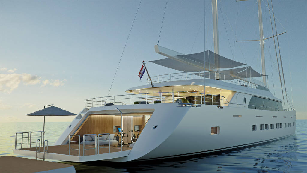 Motoryacht M/S Ad Astra M/S Ad Astra, Baujahr 2026, liegt im ACI Marina Split, Split & Umgebung, Kroatien vor Anker. Es verfügt über 6 Kabinen und bietet Platz für 12 Personen mit 6 Toiletten.