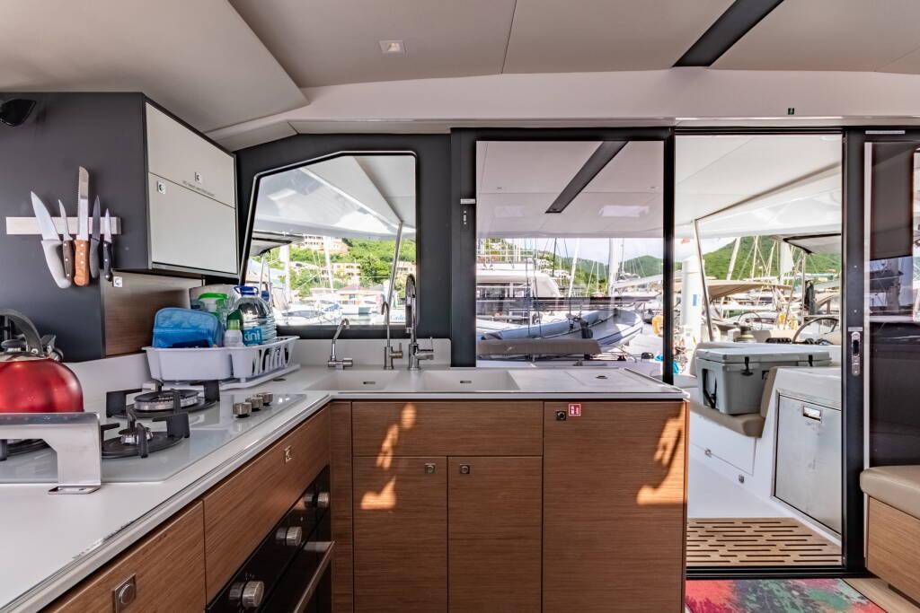 Katamaran Nautitech 44 Duality II, Baujahr 2023, liegt im BVI, Tortola, Nanny Cay Marina, Britische Jungferninseln (BVI), Britische Jungferninseln (BVI) vor Anker. Es verfügt über 3 + 1 Kabinen und bietet Platz für 6 + 1 Personen mit 2 Toiletten.