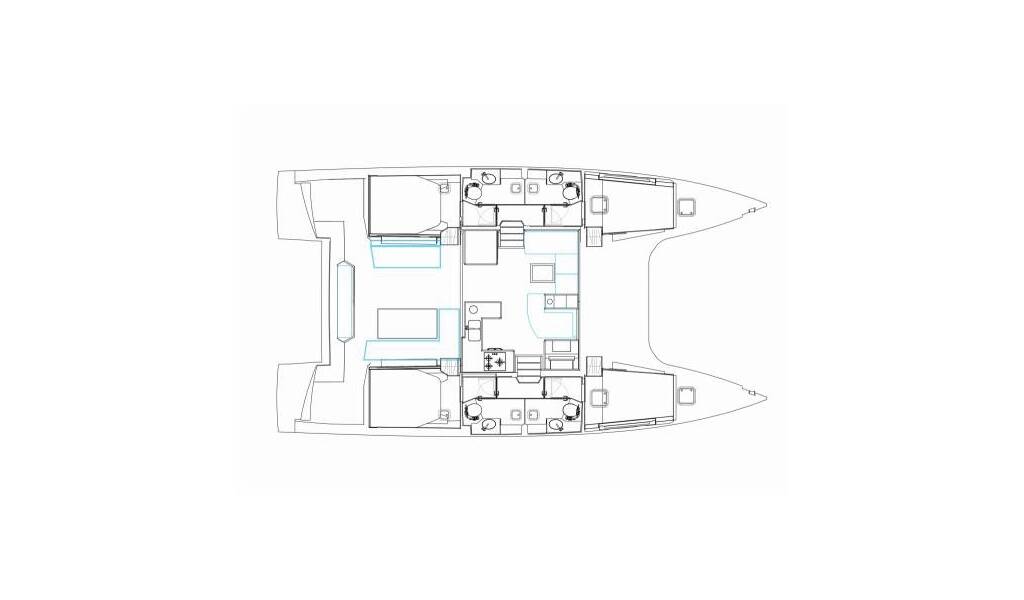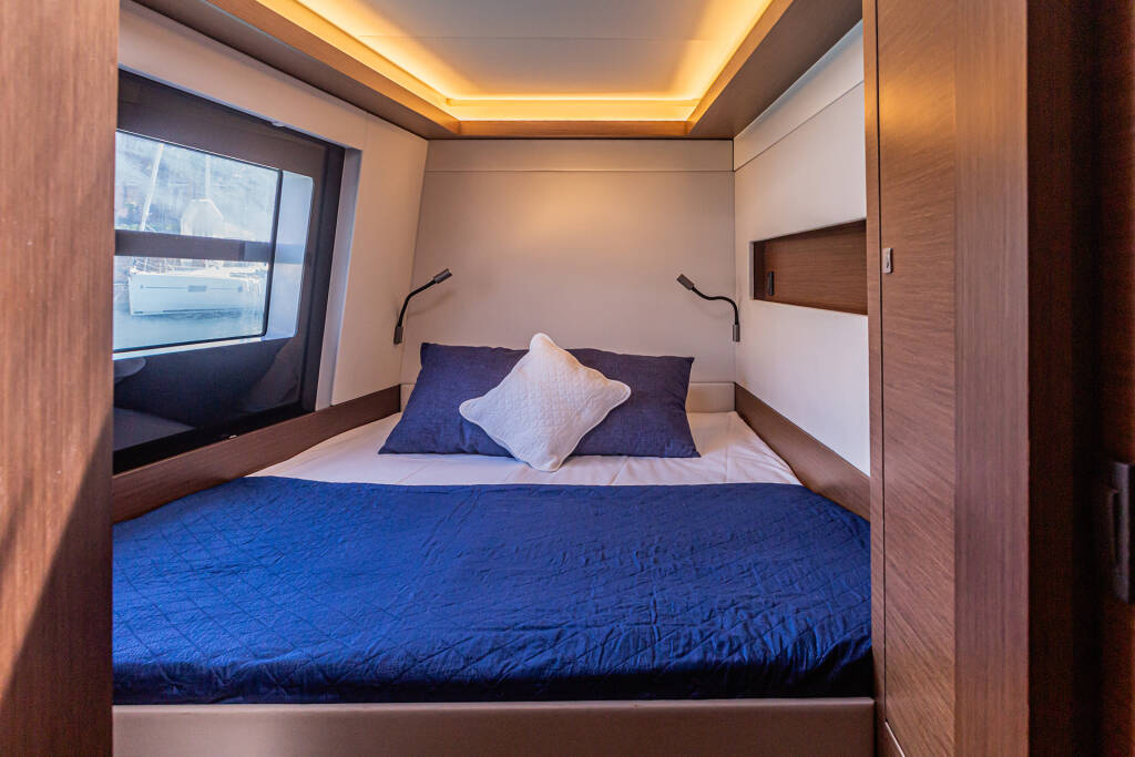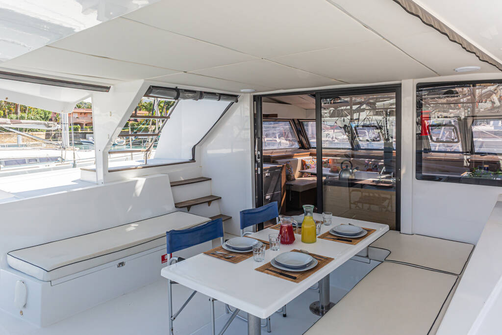 Katamaran Nautitech 46 Harmony Planet, Baujahr 2021, liegt im Sicily, Portorosa, Sizilien, Italien vor Anker. Es verfügt über 4 + 2 Kabinen und bietet Platz für 8 + 2 Personen mit 4 + 1 Toiletten.