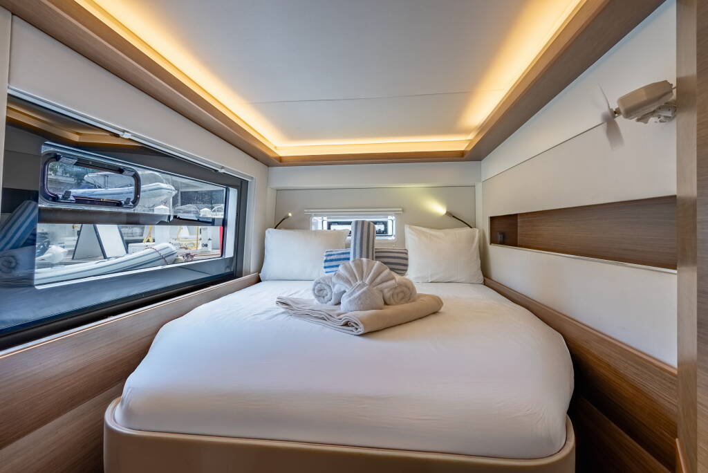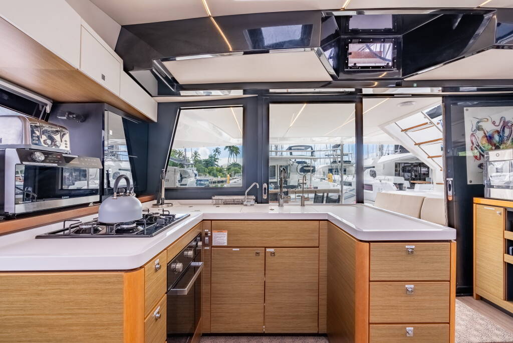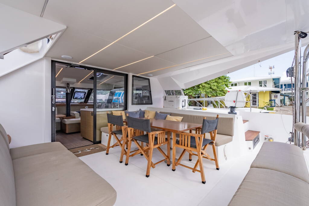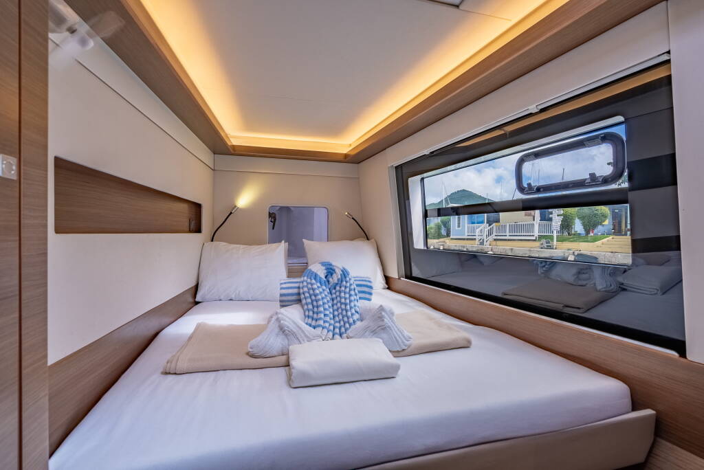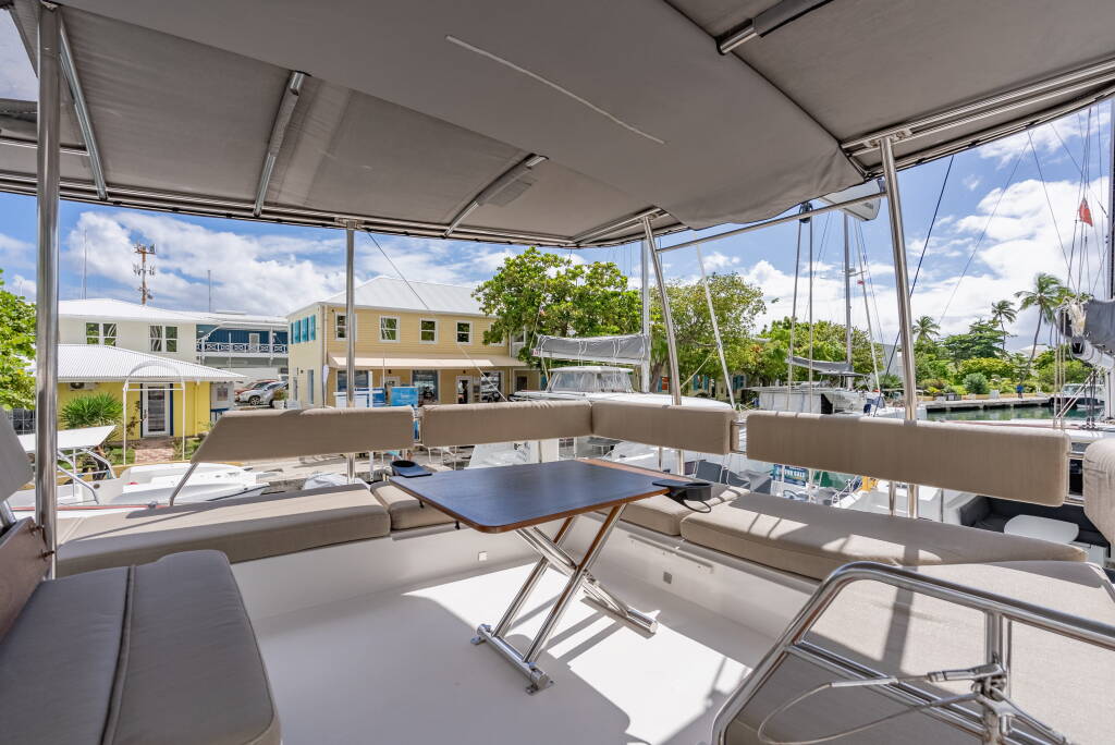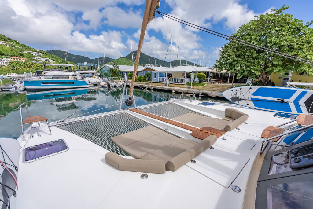 Katamaran Nautitech 46 Luna, Baujahr 2020, liegt im BVI, Tortola, Nanny Cay Marina, Britische Jungferninseln (BVI), Britische Jungferninseln (BVI) vor Anker. Es verfügt über 4 + 2 Kabinen und bietet Platz für 8 + 2 Personen mit 4 Toiletten.