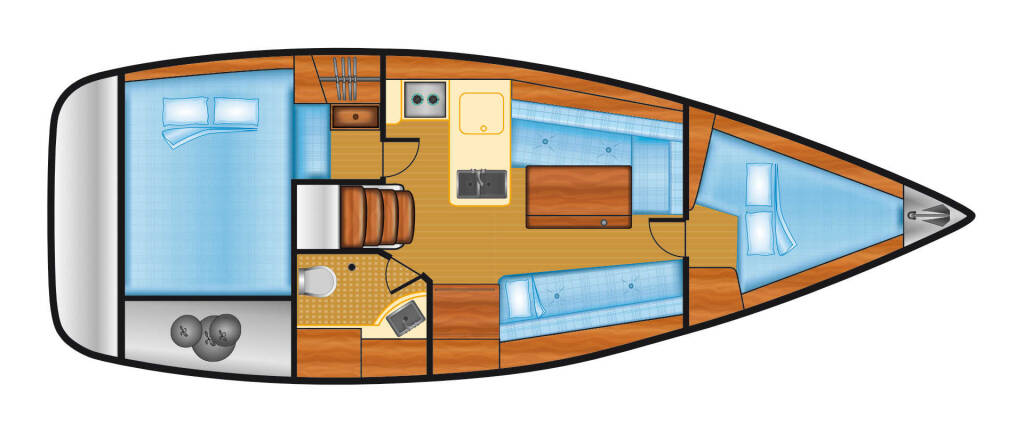 Segelyacht Oceanis 31 Poldi, Baujahr 2011, liegt im Heiligenhafen, Schleswig-Holstein, Deutschland vor Anker. Es verfügt über 2 Kabinen und bietet Platz für 4 Personen mit 1 Toiletten.