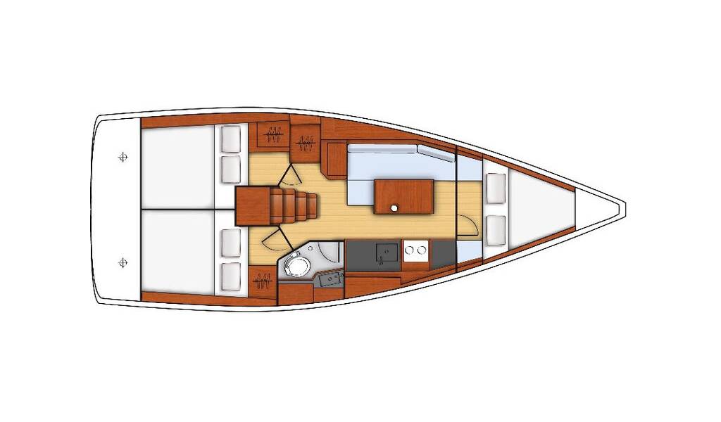 Segelyacht Oceanis 35 Gala, Baujahr 2016, liegt im ACI Marina Split, Split & Umgebung, Kroatien vor Anker. Es verfügt über 3 Kabinen und bietet Platz für 6 + 2 Personen mit 1 Toiletten.