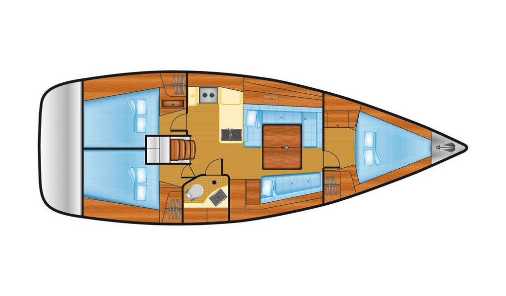 Segelyacht Oceanis 37 Summertime, Baujahr 2010, liegt im Heiligenhafen, Schleswig-Holstein, Deutschland vor Anker. Es verfügt über 3 Kabinen und bietet Platz für 6 Personen mit 1 Toiletten.