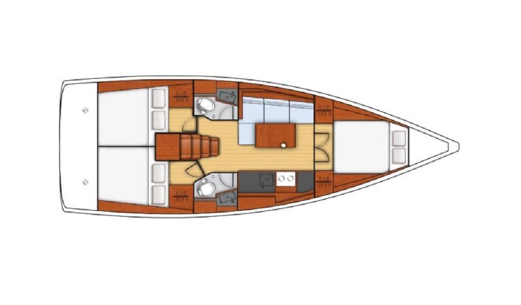 Segelyacht Oceanis 38.1 Anima Maris II, Baujahr 2018, liegt im ACI Marina Split, Split & Umgebung, Kroatien vor Anker. Es verfügt über 3 Kabinen und bietet Platz für 6 + 2 Personen mit 2 Toiletten.