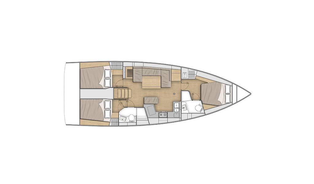 Segelyacht Oceanis 40.1 Azorian, Baujahr 2021, liegt im ACI Marina Split, Split & Umgebung, Kroatien vor Anker. Es verfügt über 3 Kabinen und bietet Platz für 6 + 2 Personen mit 2 Toiletten.