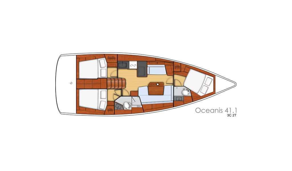 Segelyacht Oceanis 41.1 Elena, Baujahr 2020, liegt im Lefkas, D-Marin, Ionisches Meer, Griechenland vor Anker. Es verfügt über 3 Kabinen und bietet Platz für 6 Personen mit 2 Toiletten.