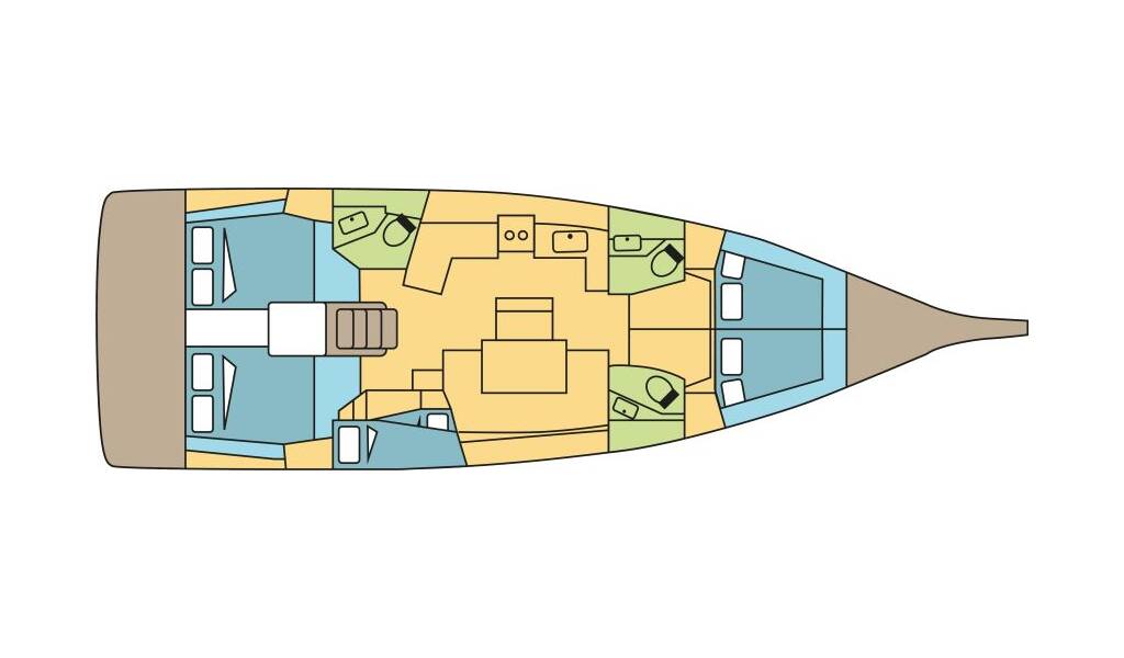 Segelyacht Oceanis 46.1 ELLI K, Baujahr 2023, liegt im Kos, Kos Marina, Dodekanes, Griechenland vor Anker. Es verfügt über 5 Kabinen und bietet Platz für 10 + 2 Personen mit 3 Toiletten.