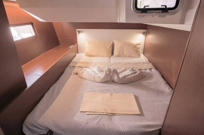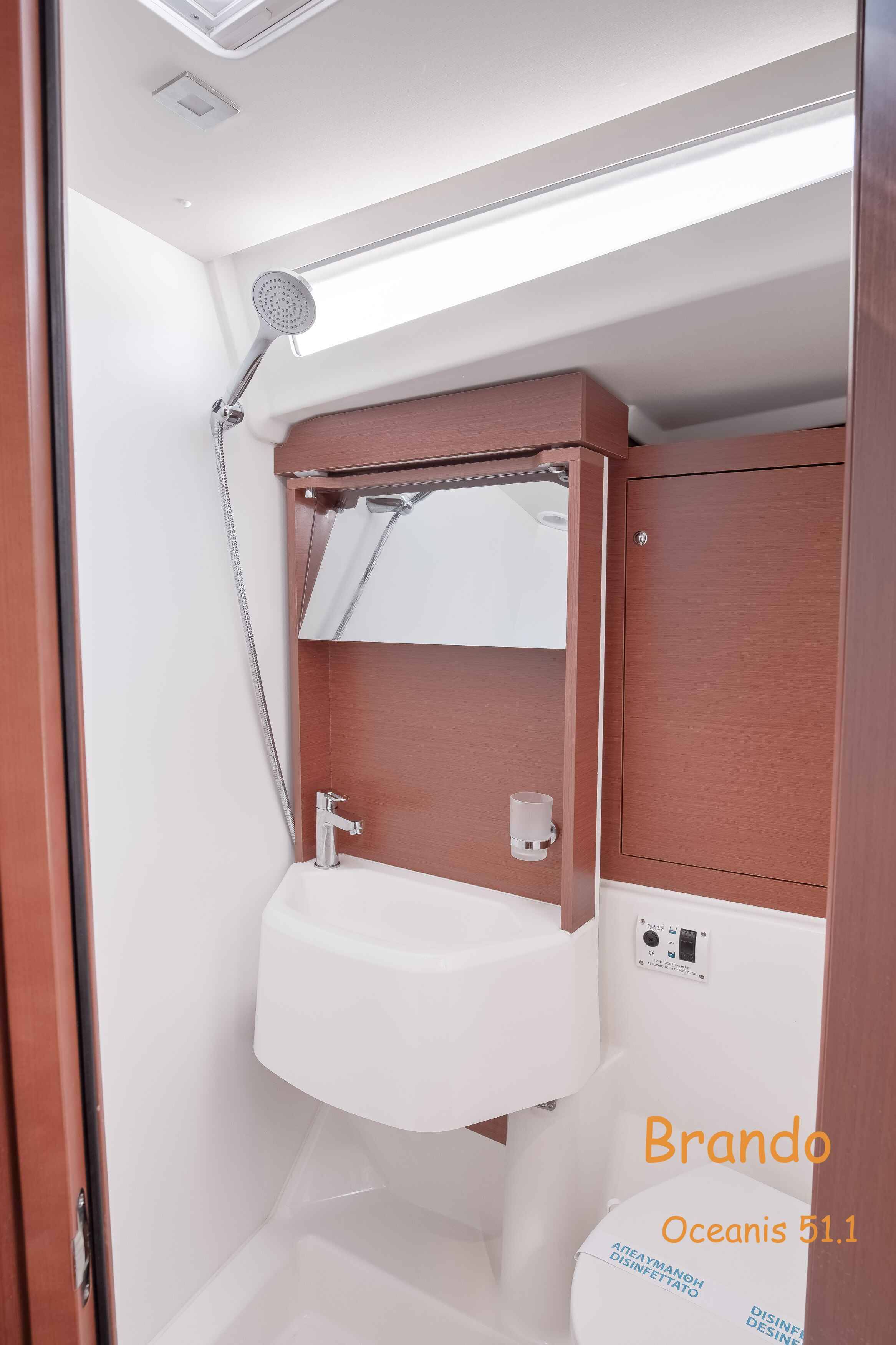 Segelyacht Oceanis 51.1 Brando, Baujahr 2019, liegt im Lefkas, D-Marin, Ionisches Meer, Griechenland vor Anker. Es verfügt über 5 + 1 Kabinen und bietet Platz für 10 + 1 Personen mit 3 + 1 Toiletten.