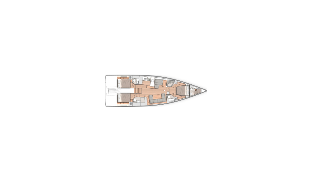 Segelyacht Oceanis 54 Big Blue, Baujahr 2022, liegt im Trogir, Yachtclub Seget (Marina Baotić), Split & Umgebung, Kroatien vor Anker. Es verfügt über 3 + 1 Kabinen und bietet Platz für 6 + 1 Personen mit 3 + 1 Toiletten.