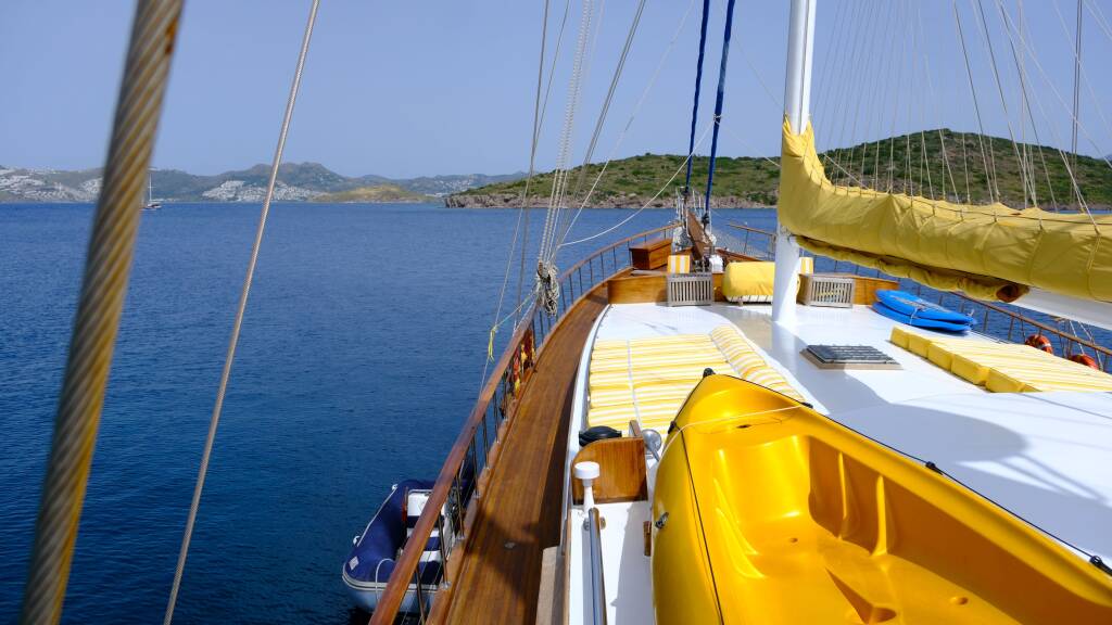 Die türkisfarbene Küste ist unendlich. Die lykische und karische Küste der türkischen Riviera bietet Blue Voyagers eine große Auswahl an kristallklarem Wasser, historischen Sehenswürdigkeiten, abgeschiedenen und geschützten Buchten sowie entspannten Ankerplätzen entlang der dicht bewaldeten Hügel und pinienbewachsenen Inseln. Die farbenfrohen, lebhaften Hafenstädte und kleinen Fischerdörfer entlang der Route heißen Sie mit mediterranem Flair herzlich willkommen.