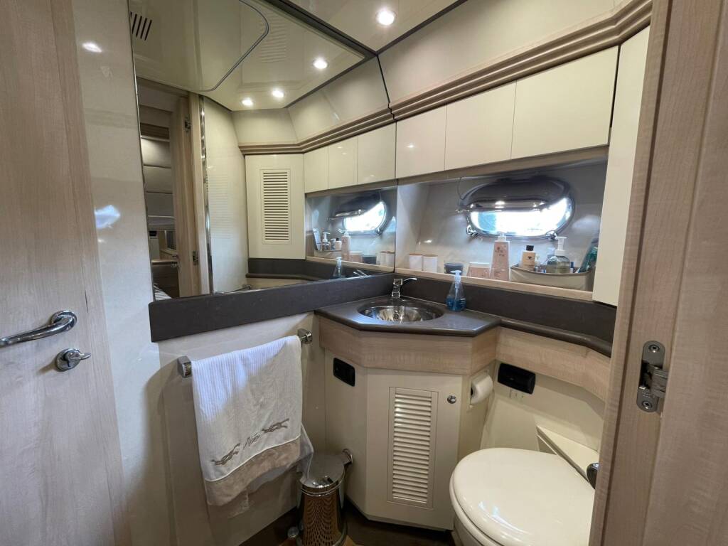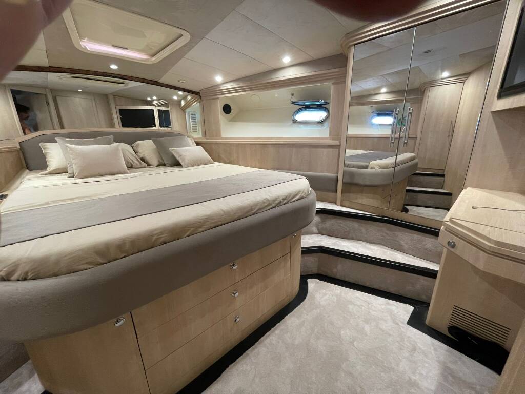 Motoryacht Sarnico 65 Noe, Baujahr 2004, liegt im Palermo, Sizilien, Italien vor Anker. Es verfügt über 3 Kabinen und bietet Platz für 6 Personen mit 3 Toiletten.