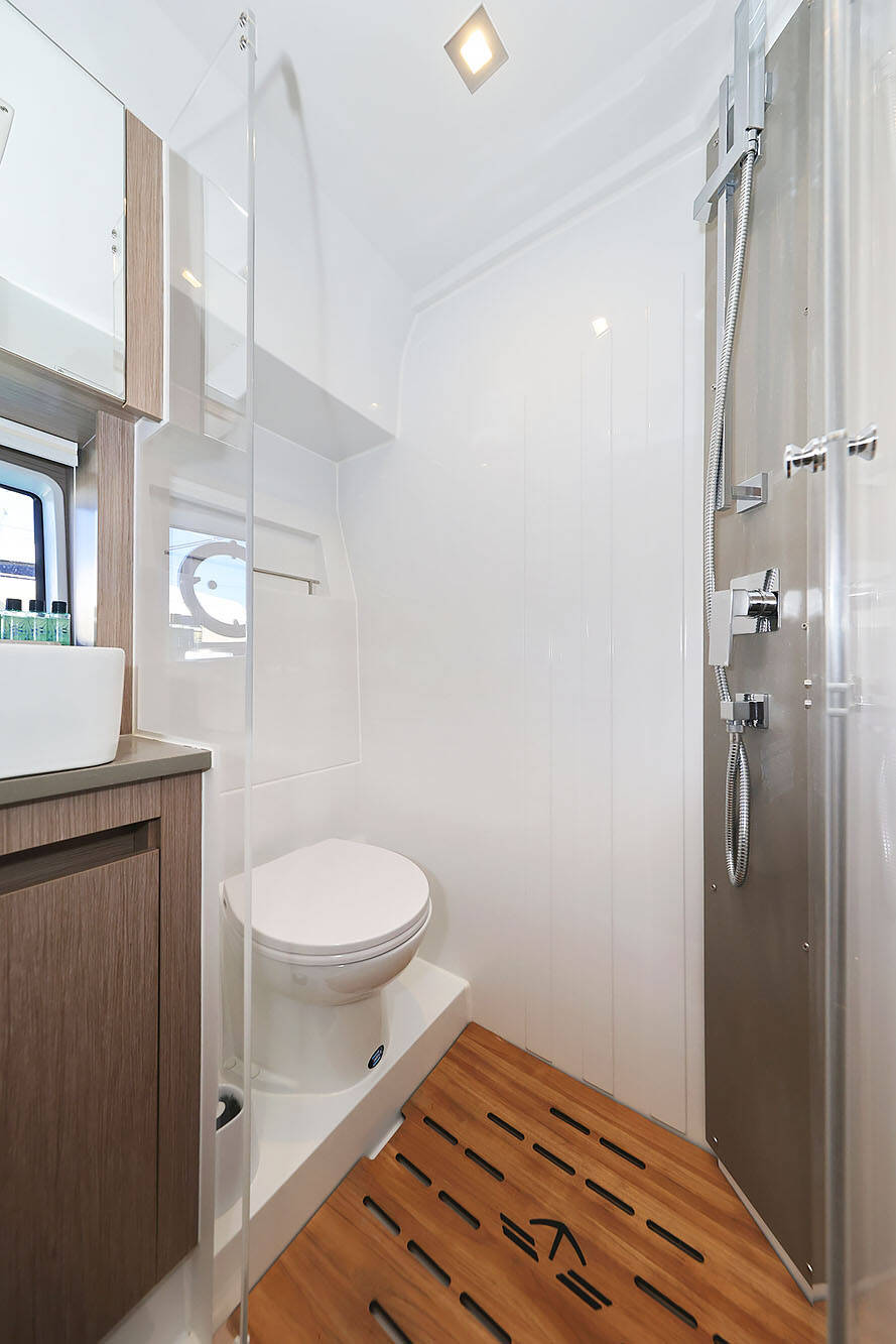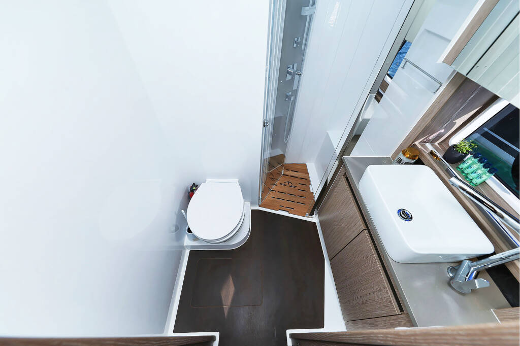 Motoryacht Sealine C390 Tireless, Baujahr 2024, liegt im Marina Kastela, Split & Umgebung, Kroatien vor Anker. Es verfügt über 3 Kabinen und bietet Platz für 6 + 2 Personen mit 2 Toiletten.