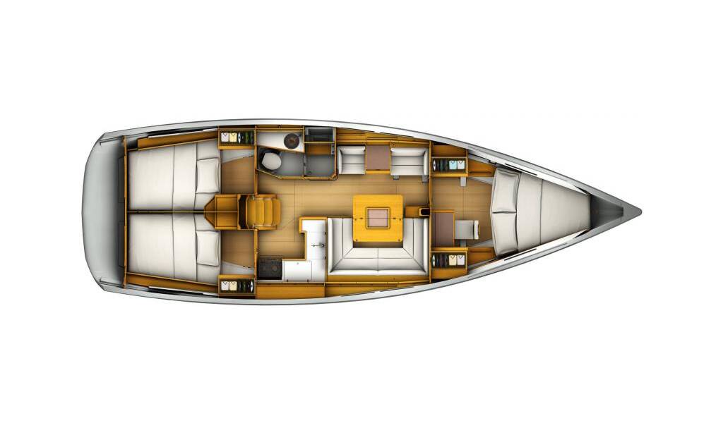 Segelyacht Sun Odyssey 419 Foxy, Baujahr 2017, liegt im Fethiye, Ece Saray Marina Resort, Aegean, Türkei vor Anker. Es verfügt über 3 Kabinen und bietet Platz für 6 Personen mit 1 Toiletten.