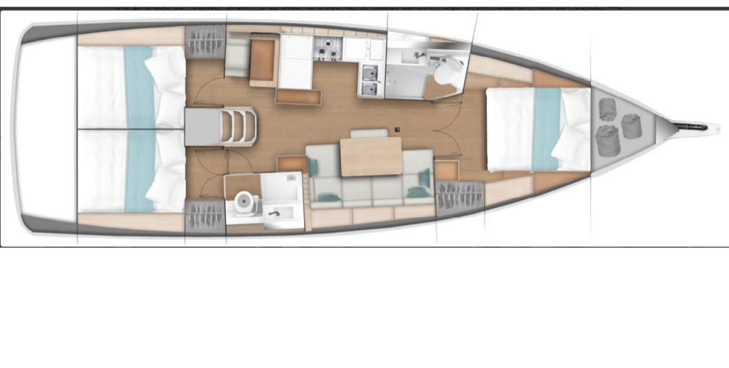 Segelyacht Sun Odyssey 440 Lucia II, Baujahr 2021, liegt im Trogir, Yachtclub Seget (Marina Baotić), Split & Umgebung, Kroatien vor Anker. Es verfügt über 3 Kabinen und bietet Platz für 6 + 2 Personen mit 2 Toiletten.