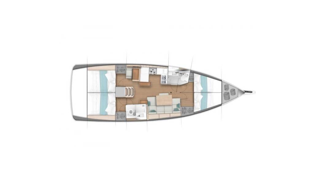 Segelyacht Sun Odyssey 440 Proud Mary, Baujahr 2019, liegt im Marina Kastela, Split & Umgebung, Kroatien vor Anker. Es verfügt über 4 Kabinen und bietet Platz für 8 + 2 Personen mit 2 Toiletten.