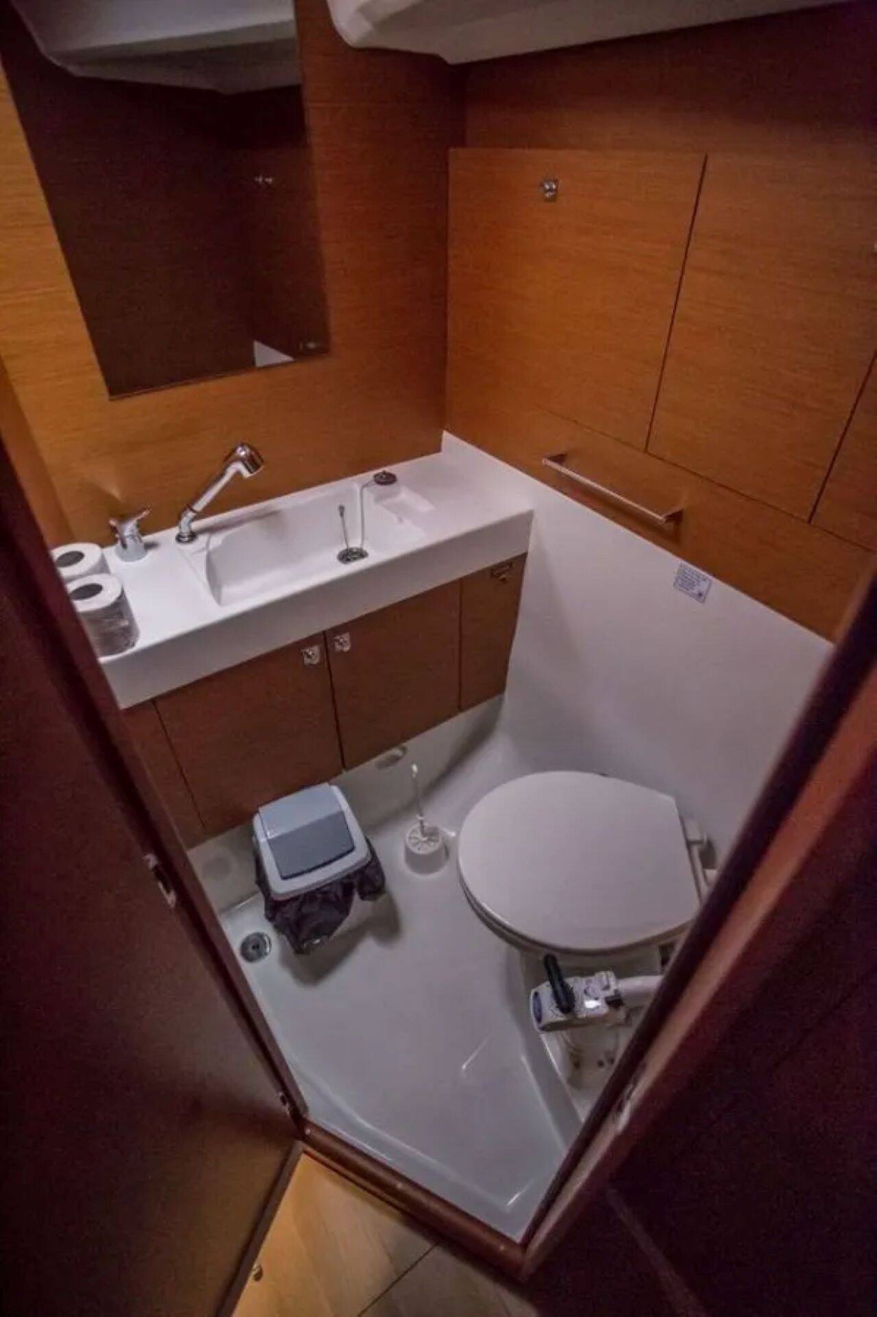 Segelyacht Sun Odyssey 519 Freyja, Baujahr 2018, liegt im Trogir, Yachtclub Seget (Marina Baotić), Split & Umgebung, Kroatien vor Anker. Es verfügt über 5 + 1 Kabinen und bietet Platz für 10 + 1 + 1 Personen mit 3 Toiletten.