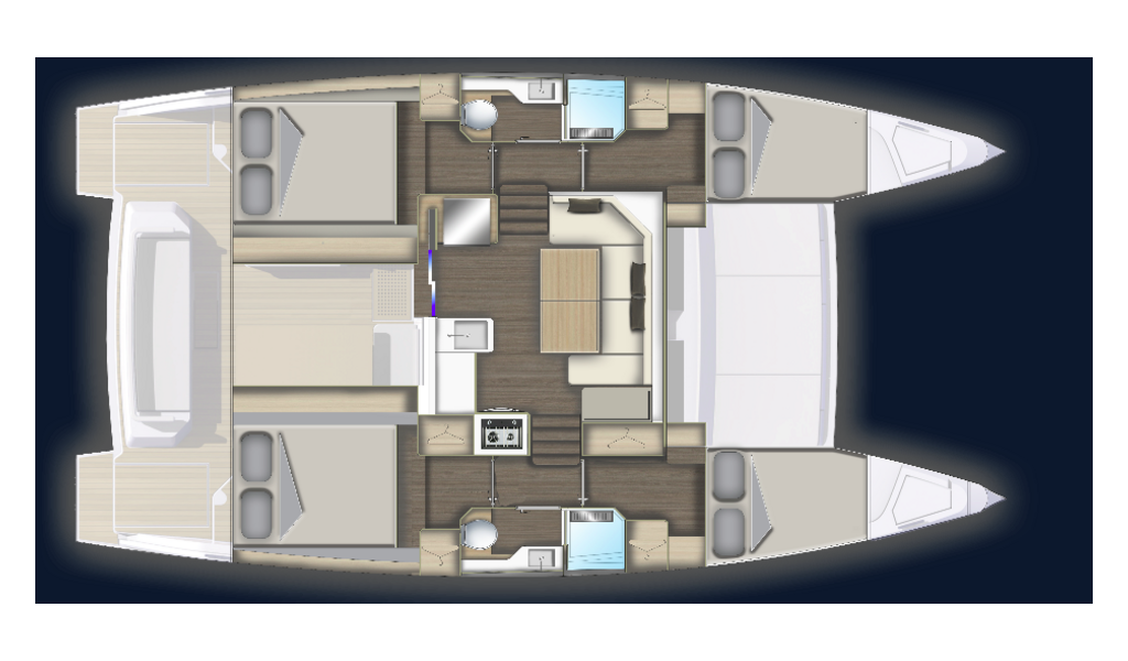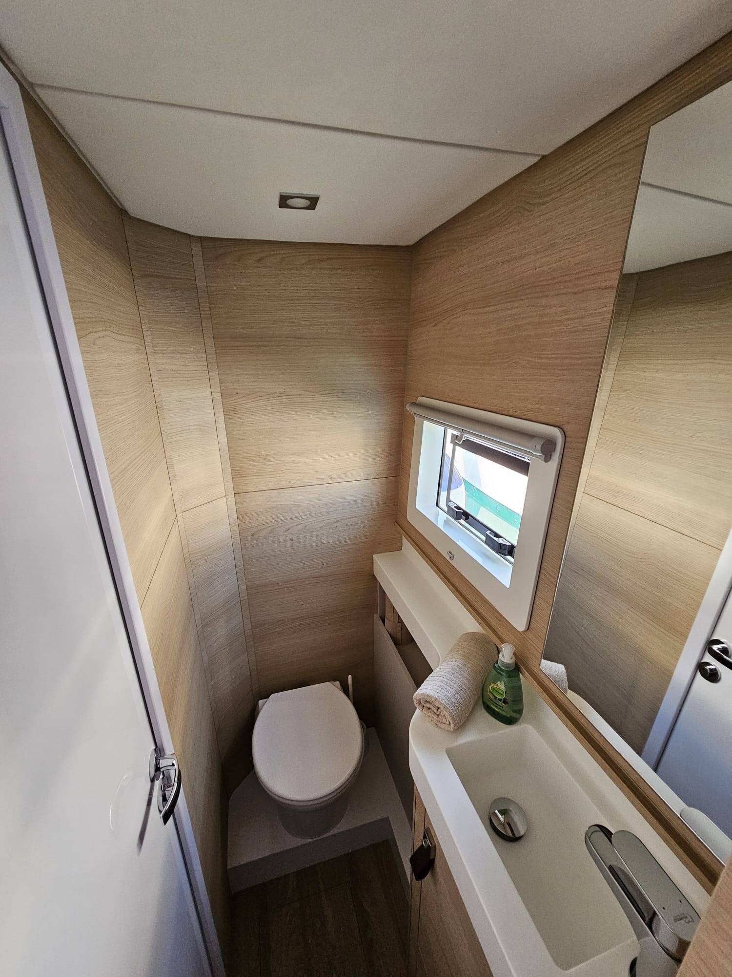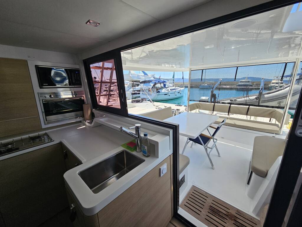 Catamaran Aventura 37 Thomas, built in 2024 is anchored in the Marina, Luka Marina (near Trogir), Split region, Croatia. It has 4 cabins, can accommodate 10 people and has 2 toilets.