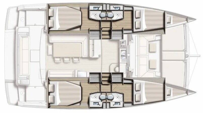 Catamaran Bali 4.1 Double Six, built in 2019 is anchored in the Malta, Kalkara Marina, Malta Xlokk, Malta. It has 4 cabins, can accommodate 8 + 2 people and has 4 toilets.