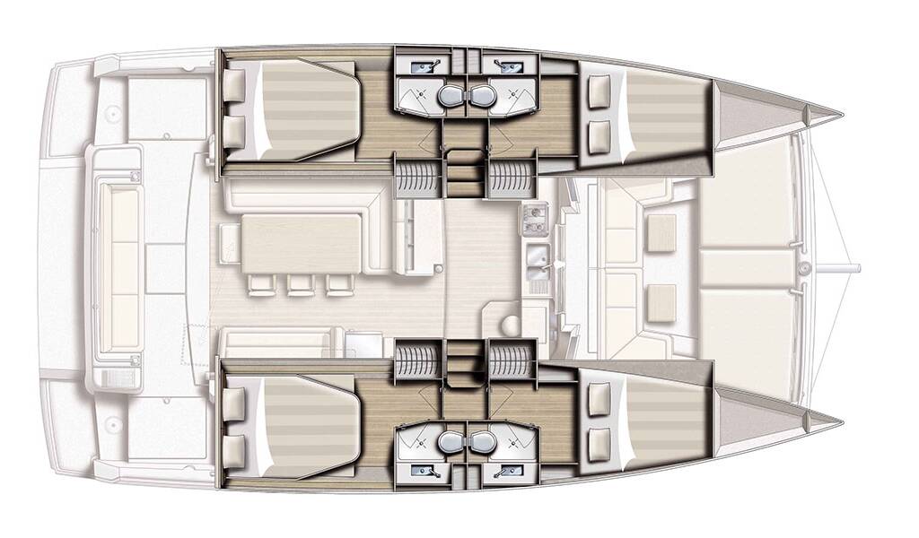 Catamaran Bali 4.1 Sinope, built in 2020 is anchored in the Preveza, Main Port, Ionian Islands, Greece. It has 4 + 2 cabins, can accommodate 8 + 1 + 2 people and has 4 toilets.