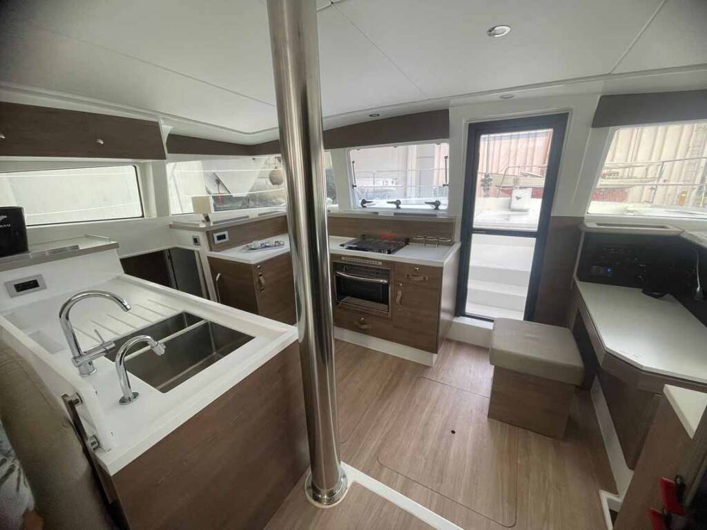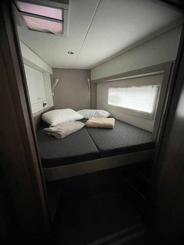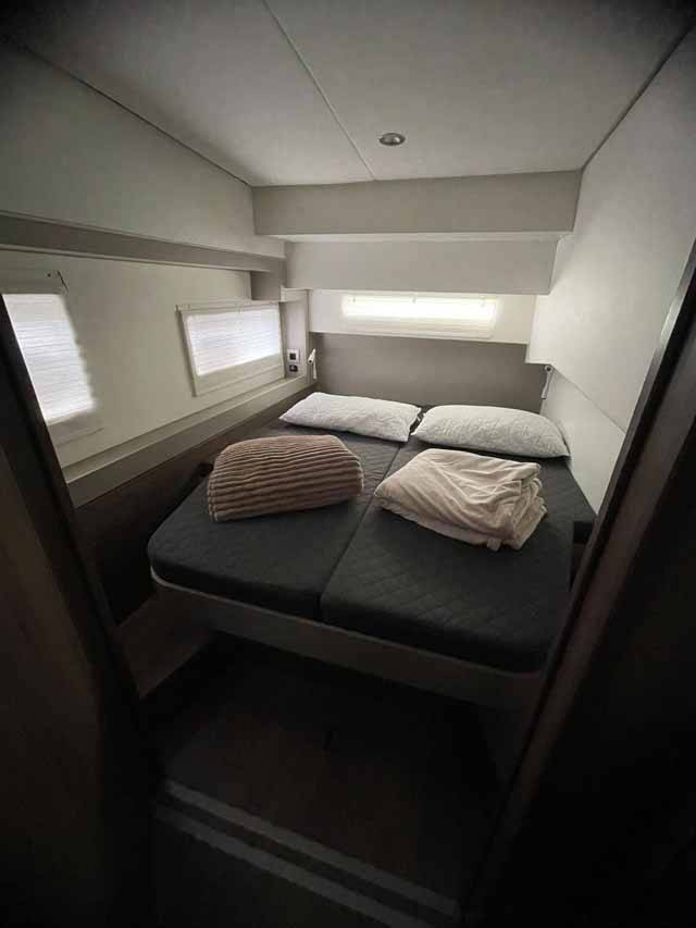 Catamaran Bali 4.2 Arveskida II, built in 2022 is anchored in the Golfo Aranci Marina Dell’Isola, Sardinia, Italy. It has 4 + 1 cabins, can accommodate 8 + 1 people and has 4 + 1 toilets.