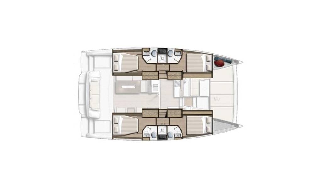 Catamaran Bali 4.2 Kos 42.4, built in 2022 is anchored in the Lefkas, D-Marin, Ionian Islands, Greece. It has 4 cabins, can accommodate 8 + 1 people and has 4 + 1 toilets.