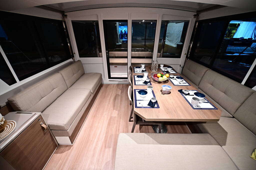 Catamaran Bali 4.6 Arche VI, built in 2025 is anchored in the Salerno, Marina d'Arechi, Campania, Italy. It has 5 + 1 cabins, can accommodate 10 + 1 people and has 4 + 1 toilets.