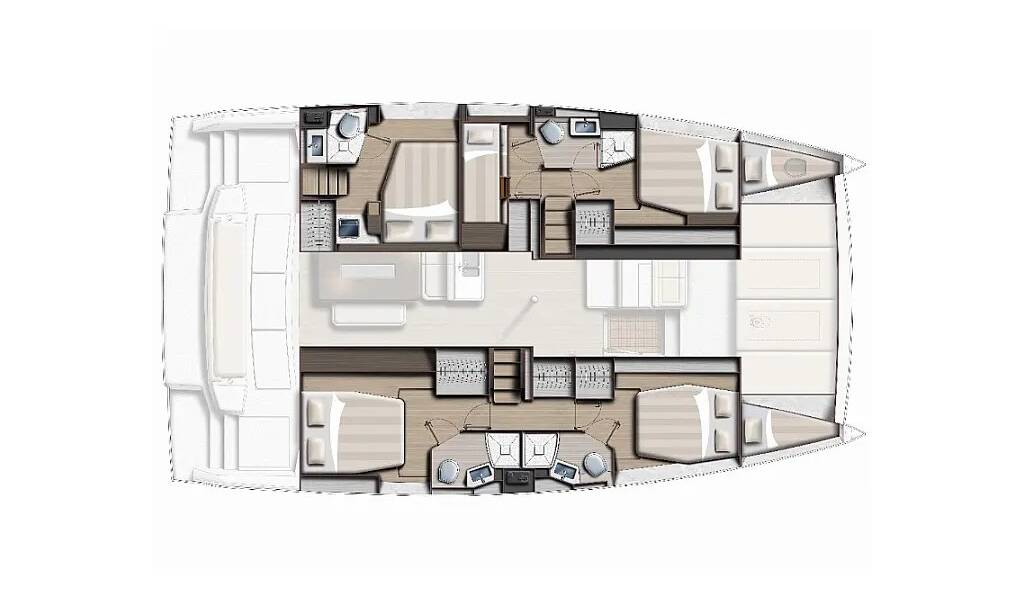 Catamaran Bali 4.6 Standra, built in 2021 is anchored in the Lefkas, D-Marin, Ionian Islands, Greece. It has 5 + 2 cabins, can accommodate 10 + 2 people and has 4 toilets.