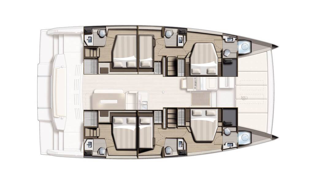 Catamaran Bali 4.8 Kos 48.1, built in 2020 is anchored in the Mykonos, Cyclades, Greece. It has 6 cabins, can accommodate 10 + 2 people and has 6 toilets.