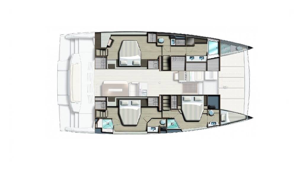 Catamaran Bali 4.8 OW Resif, built in 2022 is anchored in the Göcek/D-Marin, Aegean, Turkey. It has 3 + 1 cabins, can accommodate 8 people and has 3 + 1 toilets.