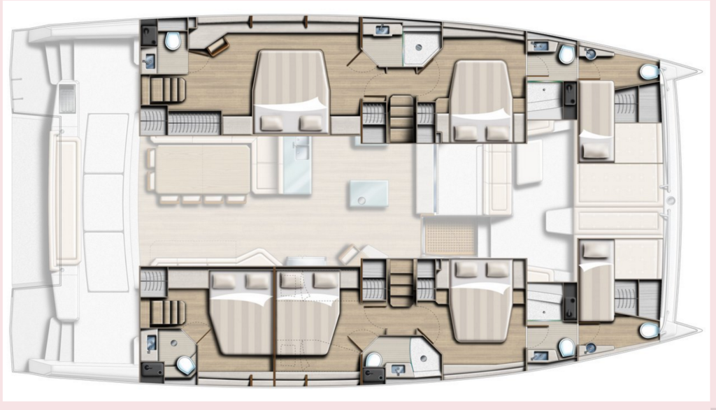 Catamaran Bali 5.4 Virginia, built in 2022 is anchored in the Capo D'orlando Marina, Sicily, Italy. It has 5 + 2 cabins, can accommodate 10 + 2 people and has 5 + 2 toilets.