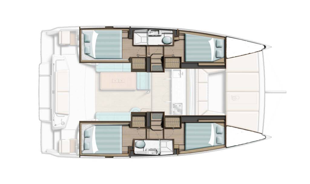 Catamaran Bali Catsmart Timeless, built in 2025 is anchored in the Lefkas, Perigiali, Ionian Islands, Greece. It has 4 cabins, can accommodate 8 + 2 people and has 2 toilets.