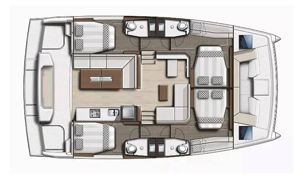 Catamaran Bali Catspace Rafaela, built in 2025 is anchored in the Lefkas, D-Marin, Ionian Islands, Greece. It has 4 + 1 cabins, can accommodate 8 + 1 people and has 4 toilets.