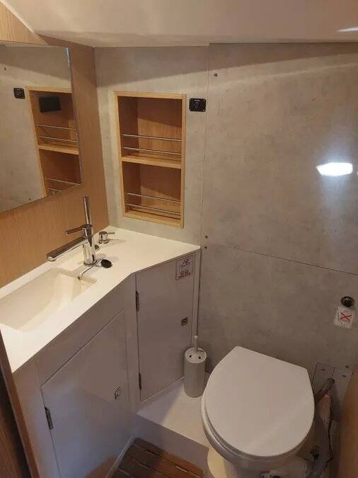 Sailing yacht Bavaria C42 Marabou, built in 2023 is anchored in the Lefkas, D-Marin, Ionian Islands, Greece. It has 3 cabins, can accommodate 6 + 2 people and has 2 toilets.