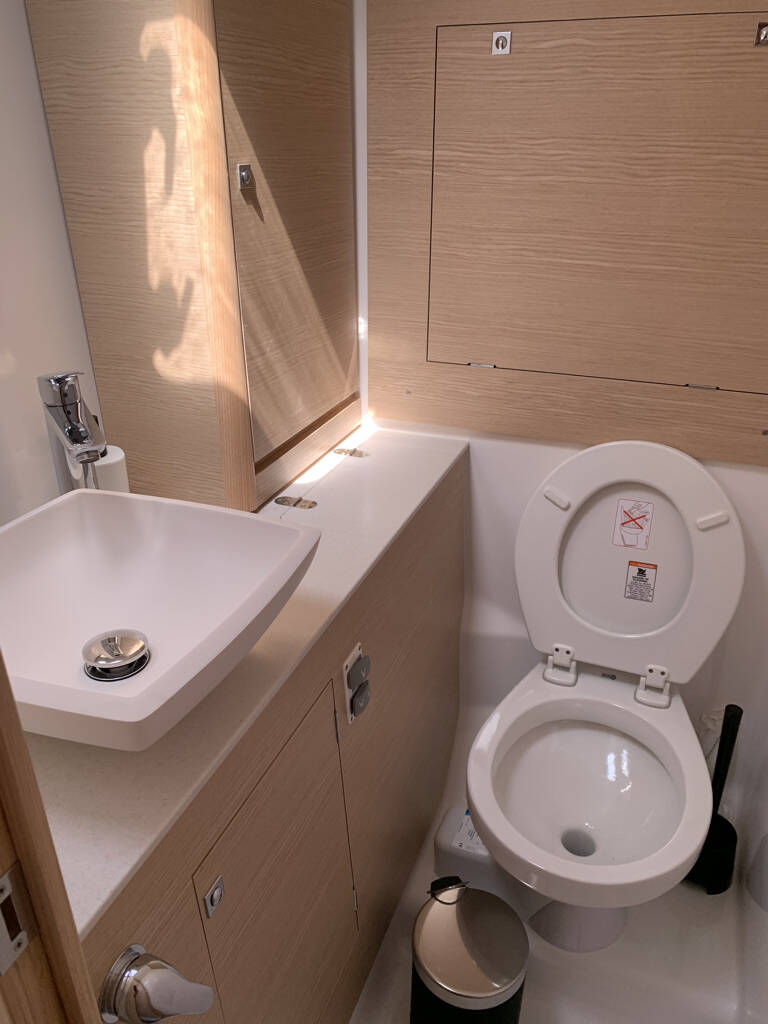 Sailing yacht Dufour 390 GL R2D2, built in 2021 is anchored in the Rhodes New Marina, Dodecanese, Greece. It has 3 cabins, can accommodate 6 + 2 people and has 3 toilets.