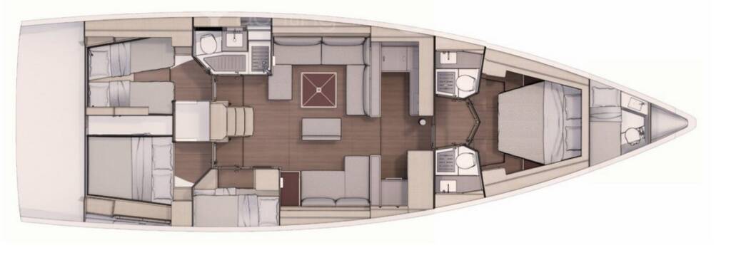 Sailing yacht Dufour 530 Gringott, built in 2021 is anchored in the Sardinia, Punta Nuraghe, Sardinia, Italy. It has 4 + 1 cabins, can accommodate 8 + 1 people and has 3 + 1 toilets.