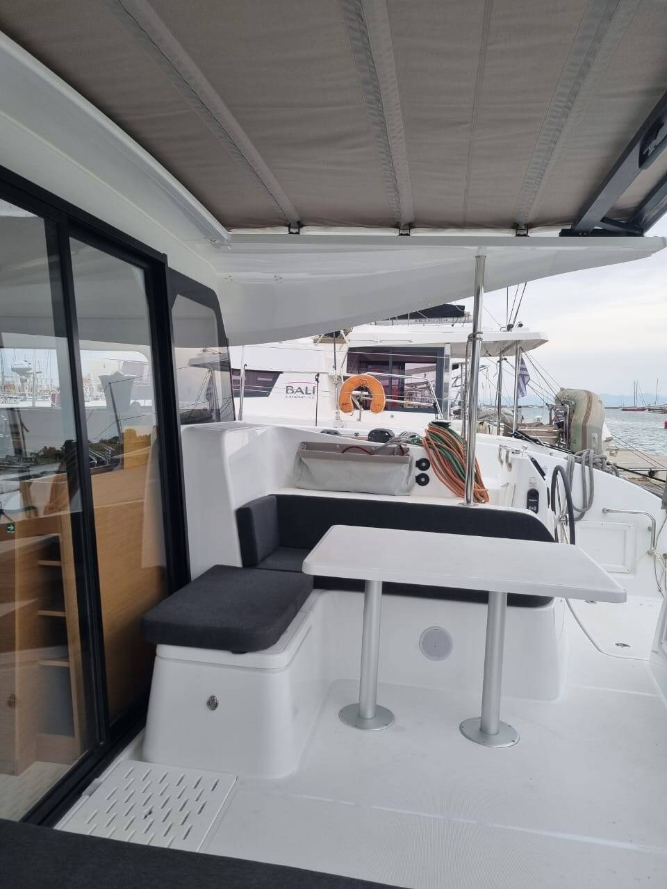 Catamaran Excess 11 Ad Astra, built in 2023 is anchored in the Preveza, Main Port, Ionian Islands, Greece. It has 4 + 2 cabins, can accommodate 8 + 2 + 2 people and has 2 toilets.