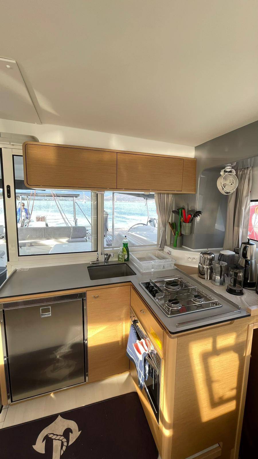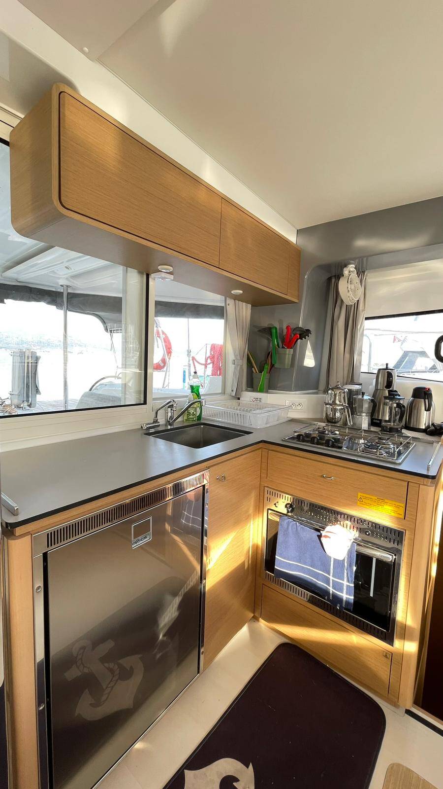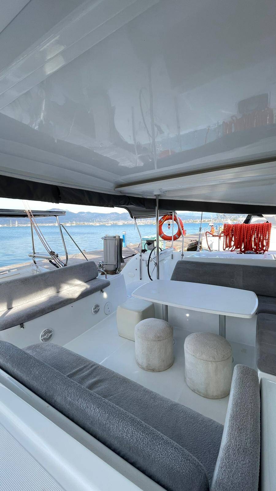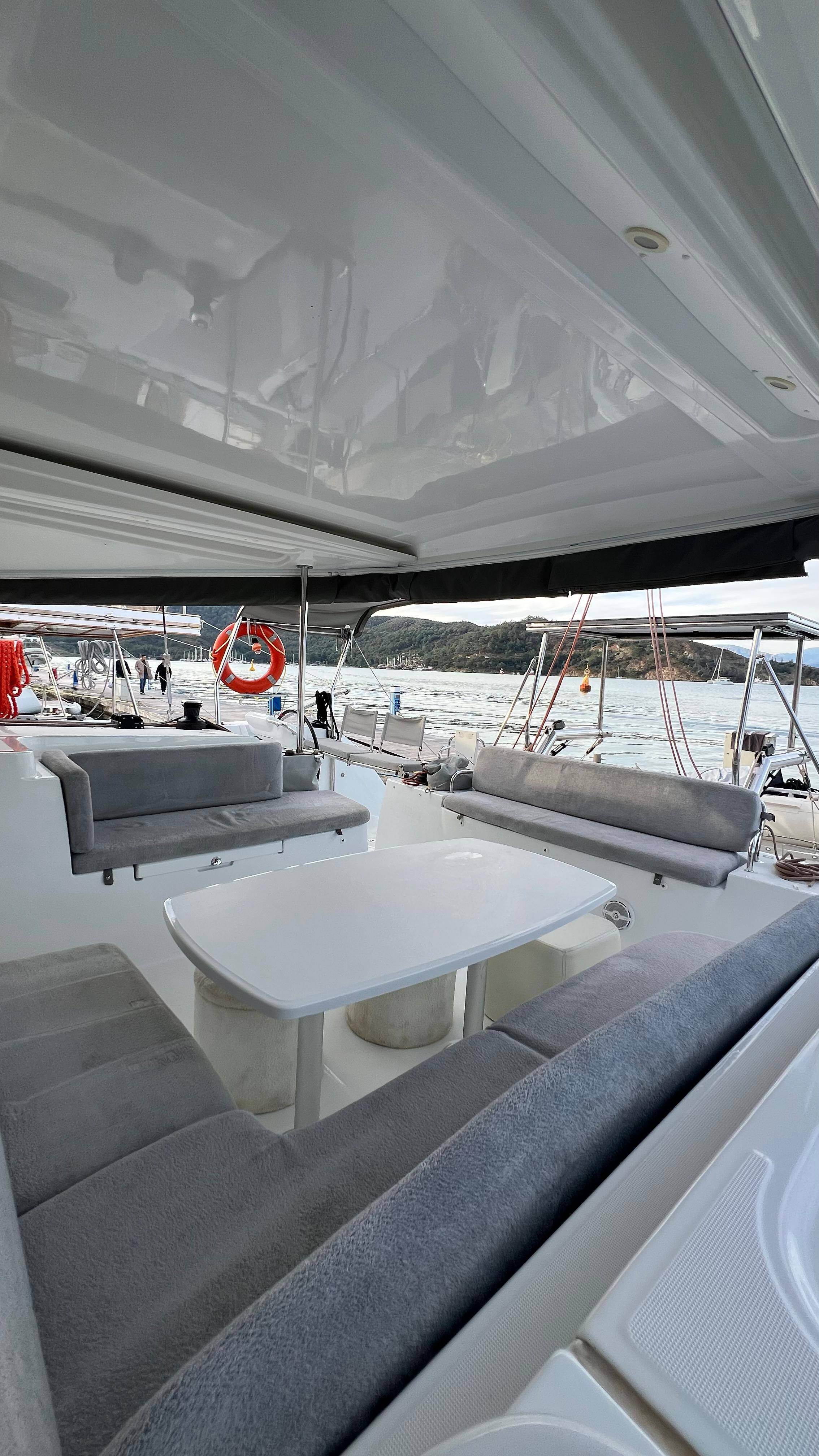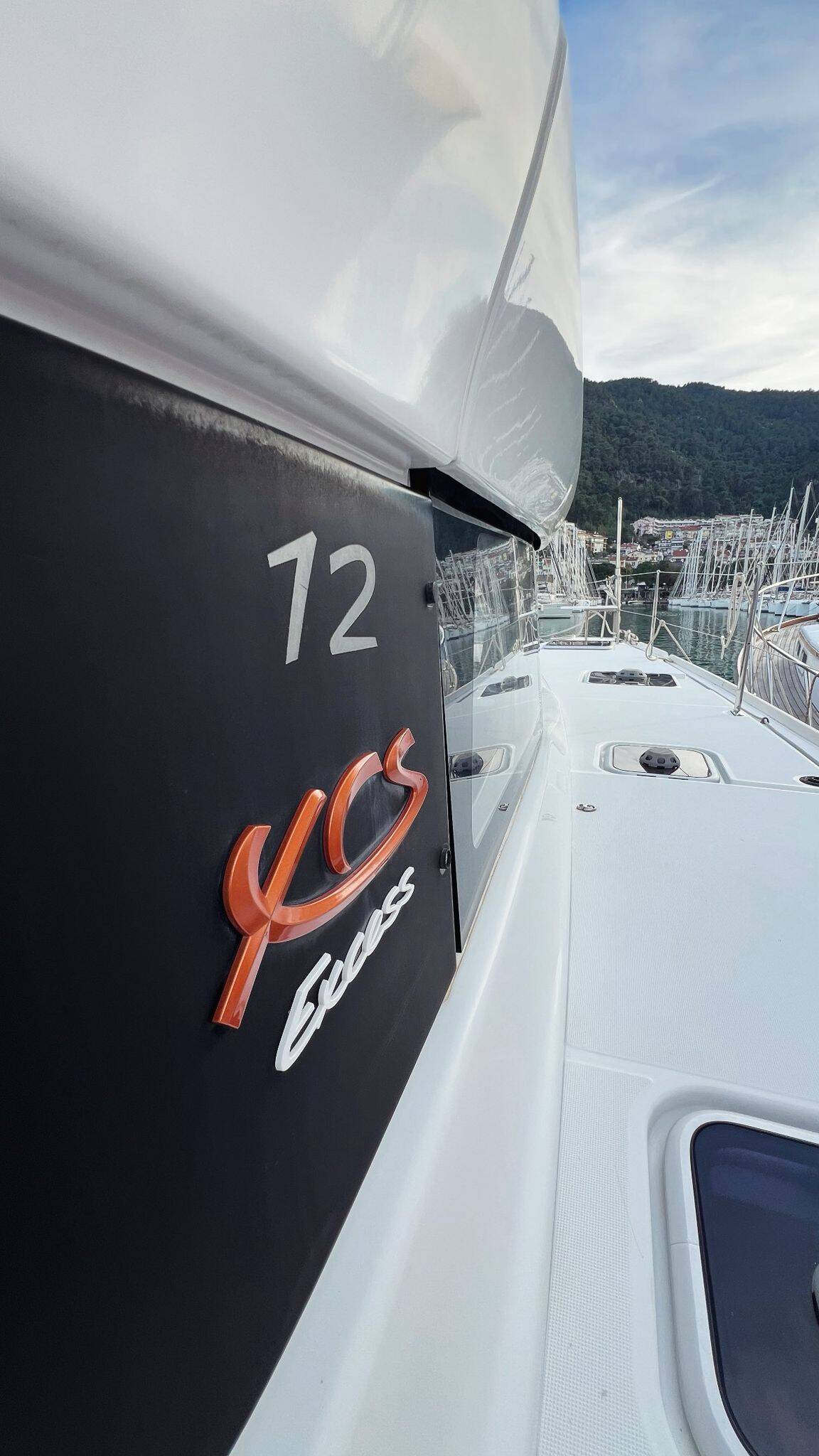 Catamaran Excess 12 Kalevezi, built in 2022 is anchored in the Fethiye, Ece Saray Marina Resort, Aegean, Turkey. It has 4 cabins, can accommodate 8 + 2 people and has 4 toilets.