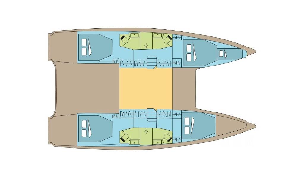 + provisioning, Crew on board must have their own toilets/ showers. If either a skipper or a hostess/cook is on board, 1 double cabin will be required for him/her. If both a skipper and a hostess/cook are on board, 1 double cabin and 1 forepeak cabin will be required for them. Exceptions exists for specific layouts, Sales Agents will provide more details about the different boat models // In Spain, law requires clients to pay hostess directly with a contract established between both parties - Payable at the base